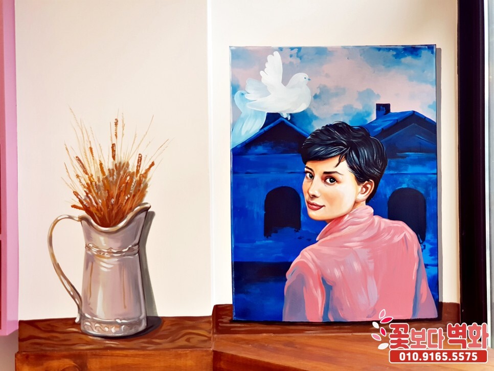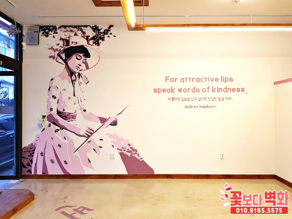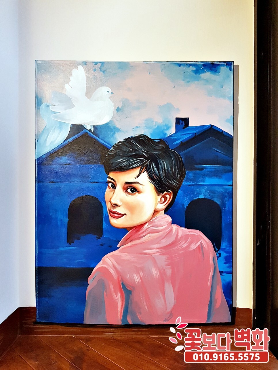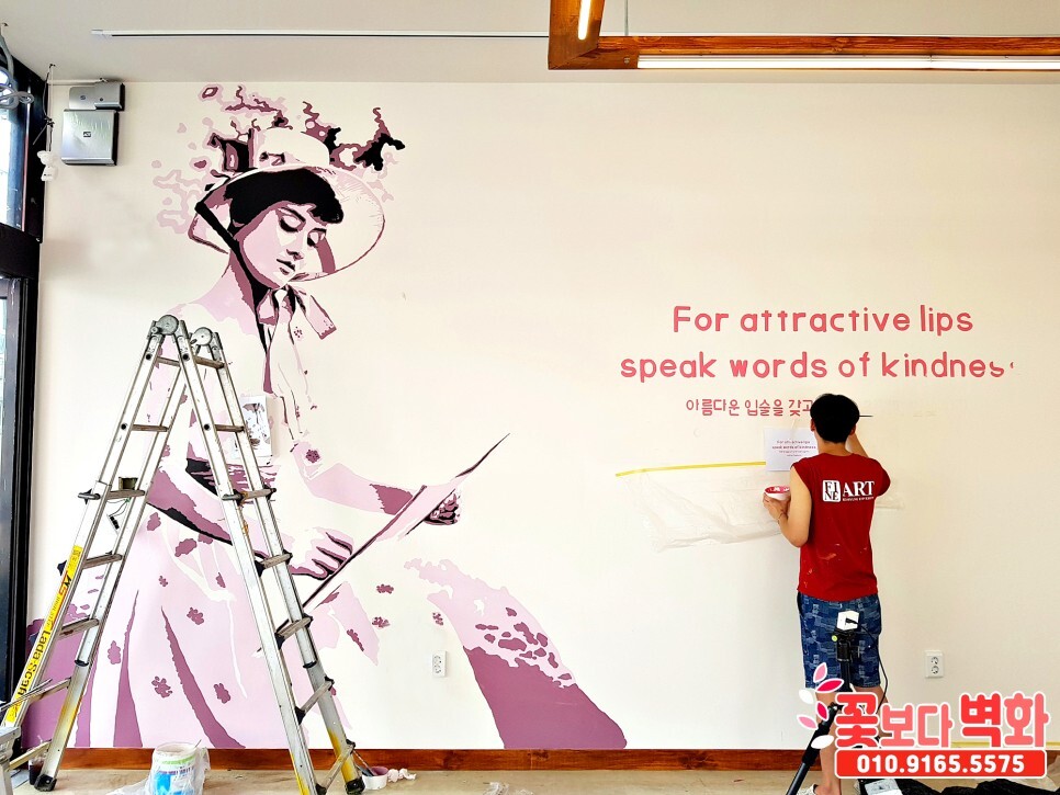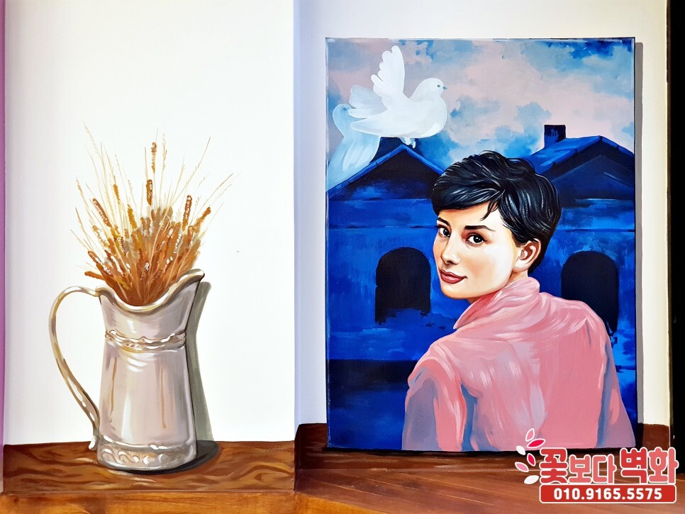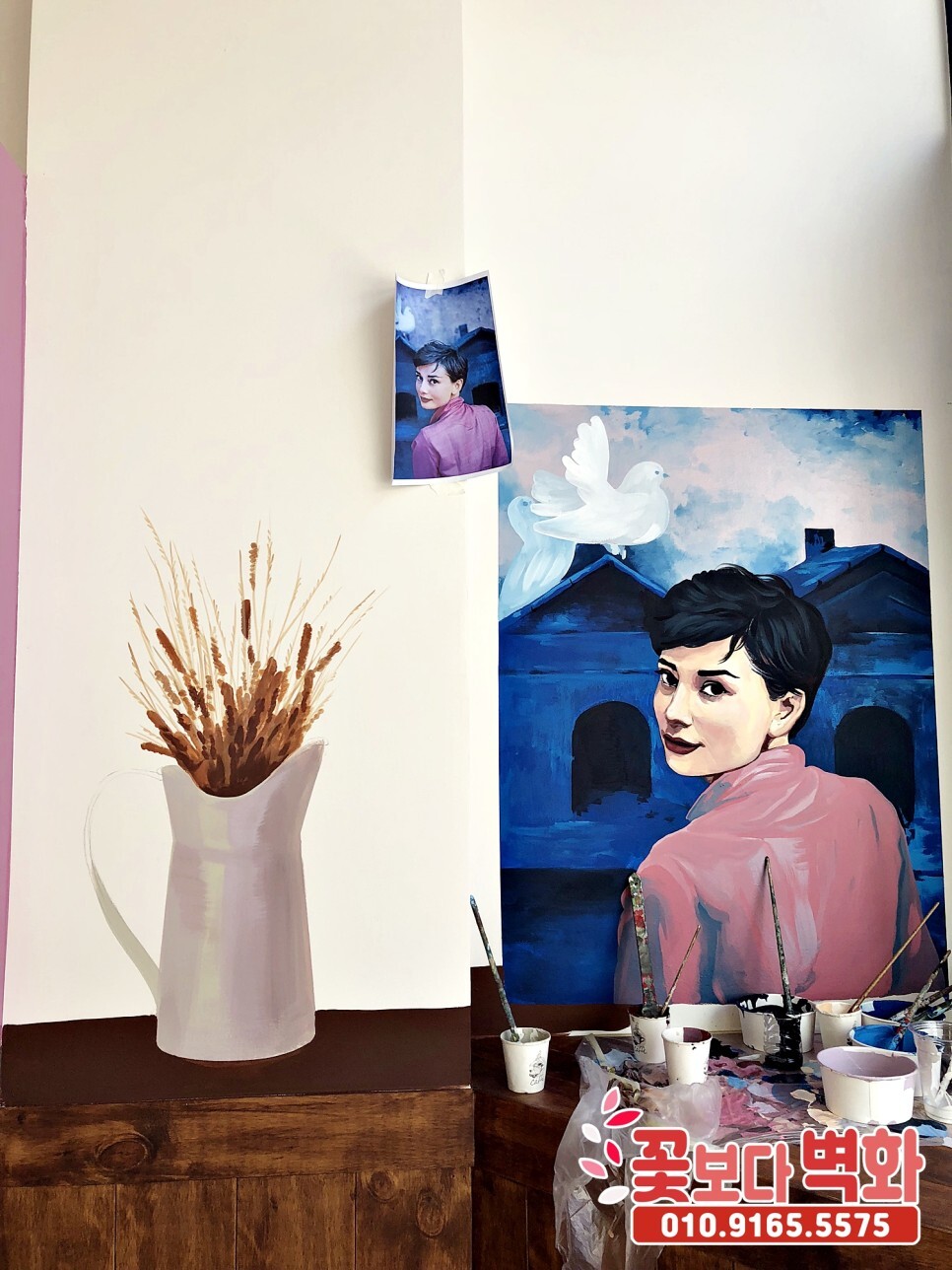 메인그림과 같은 일러스트 느낌의 오드리 헵번 벽화가 그려졌습니다.