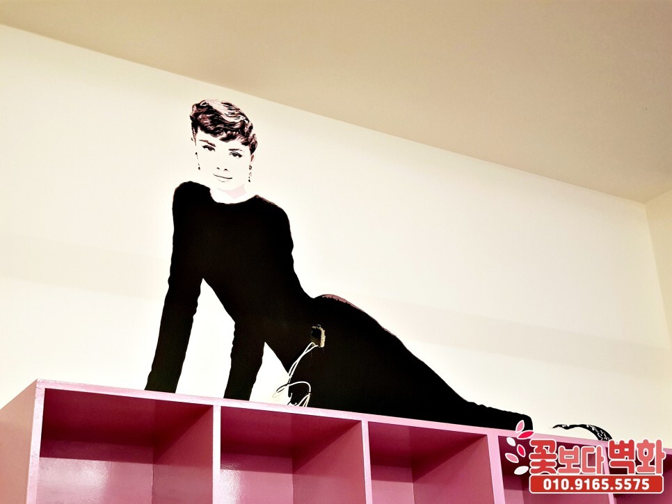 서랍장 위와 창가 부분에 오드리 헵번 그림이 그려질 건데요~