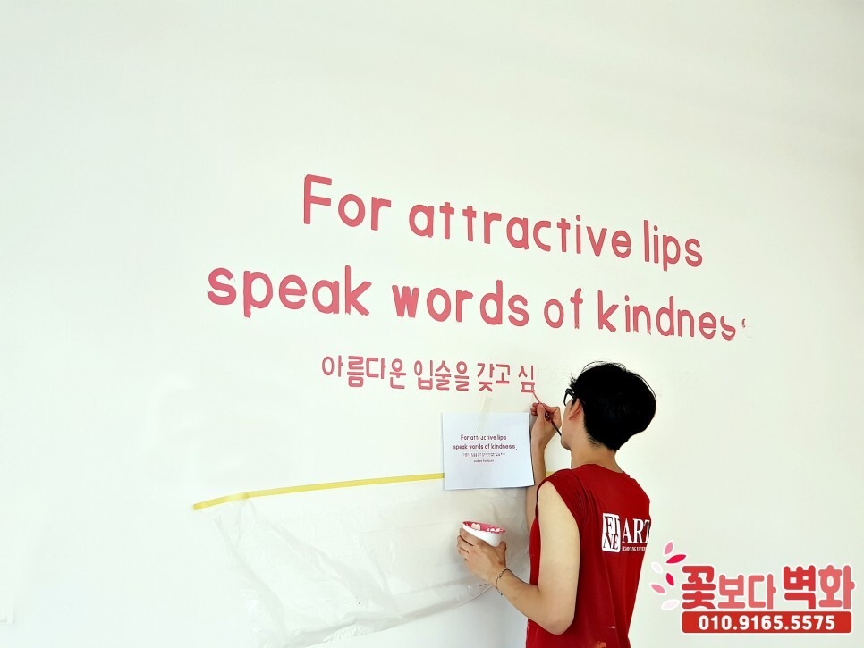 하나하나 정성스럽게 문구를 써 내려가는 꽃보다벽화
