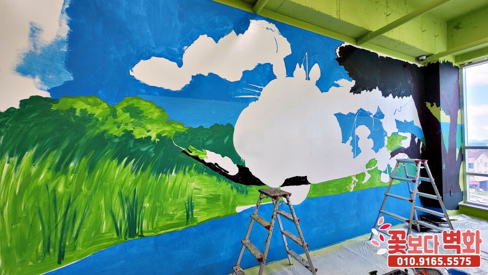 자 이제 여기에 토토로 애니메이션 인테리어벽화를 그려보겠습니다!