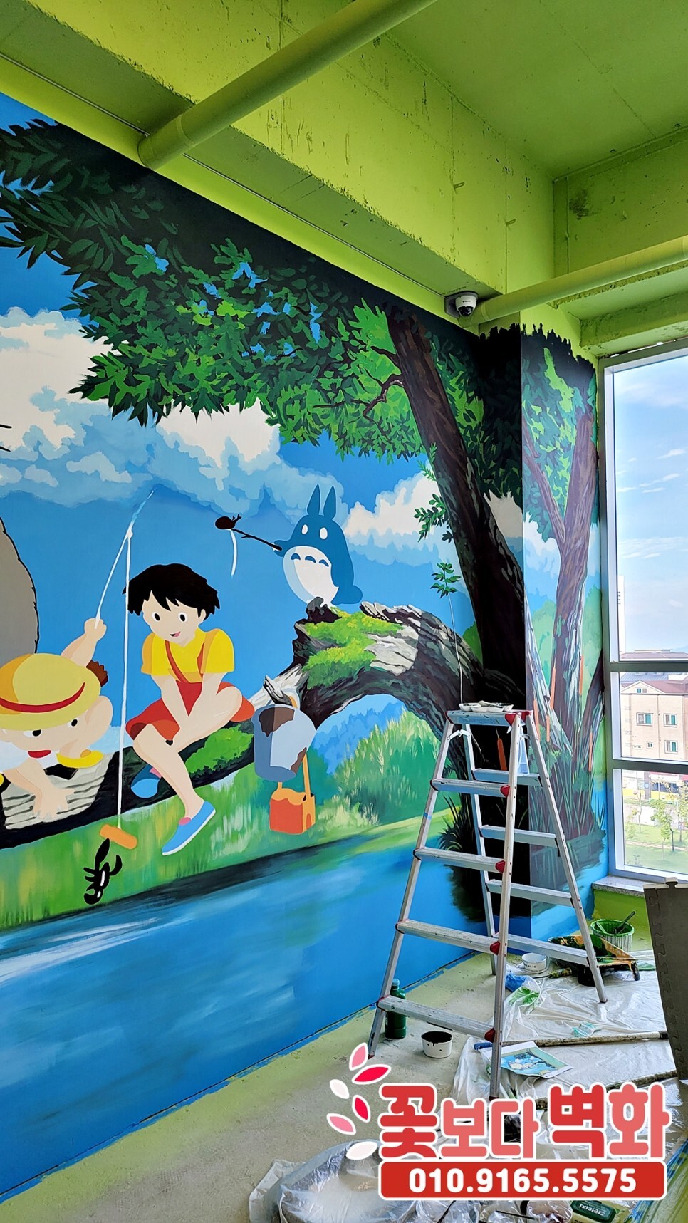 캐릭터보다 배경이 더욱 중심이 되는 벽화인데요 :)