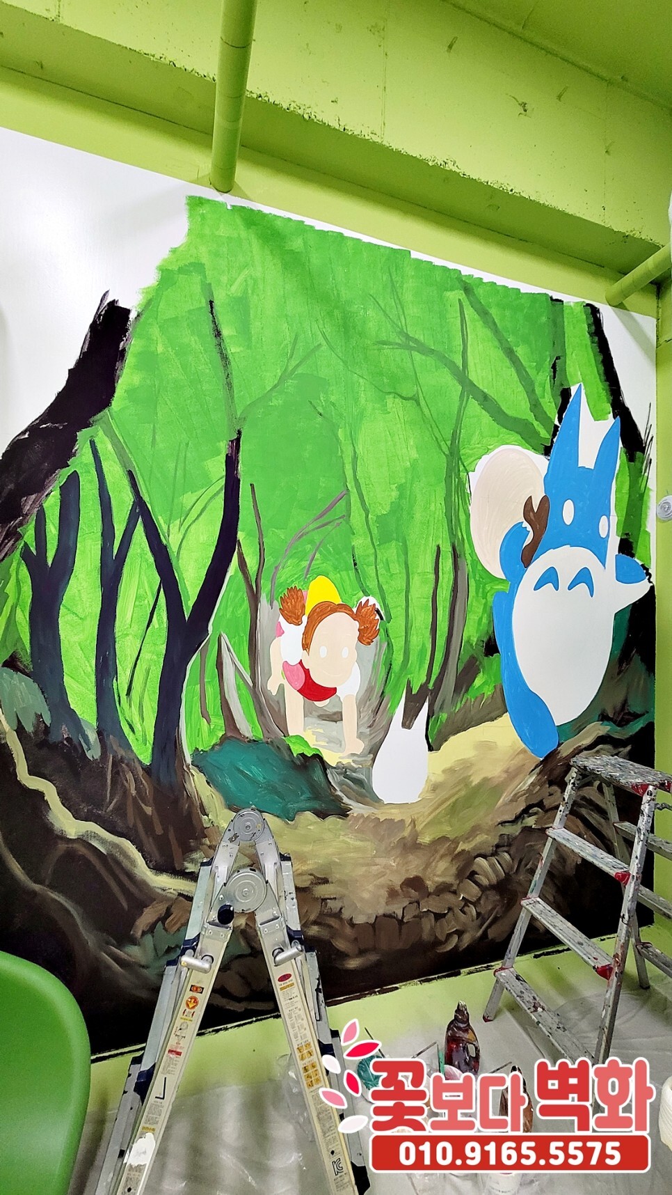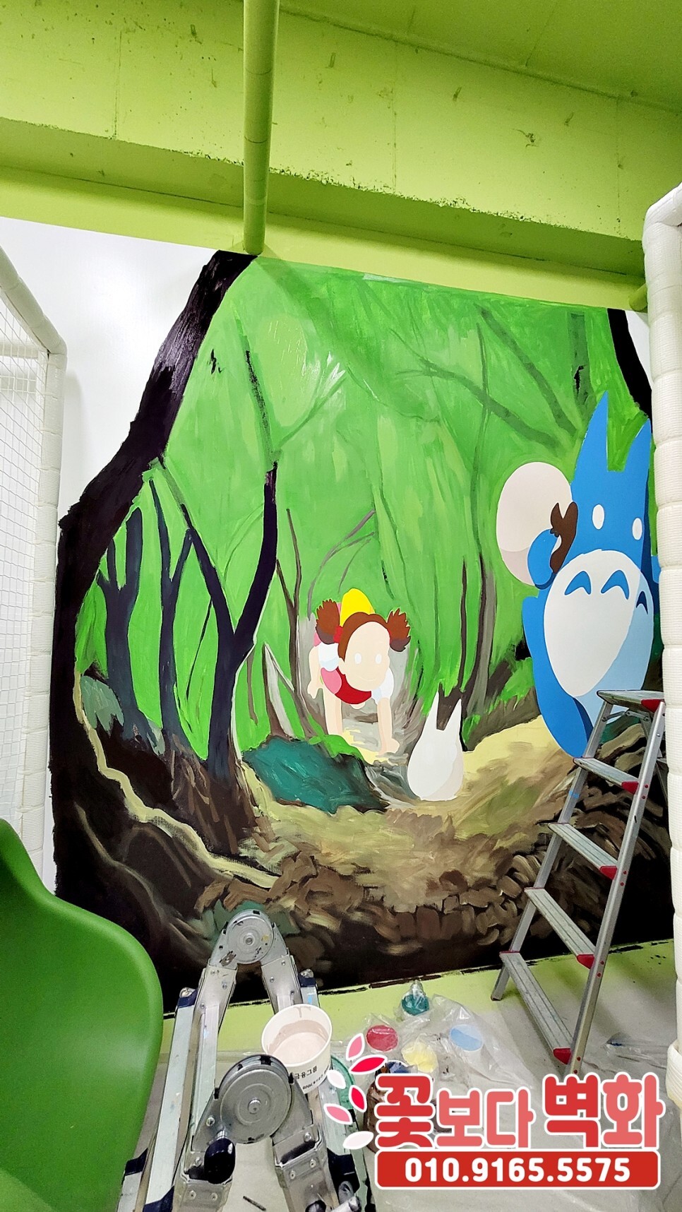 짜잔~!!! 키즈카페 토토로 애니메이션 인테리어벽화 완성!!!