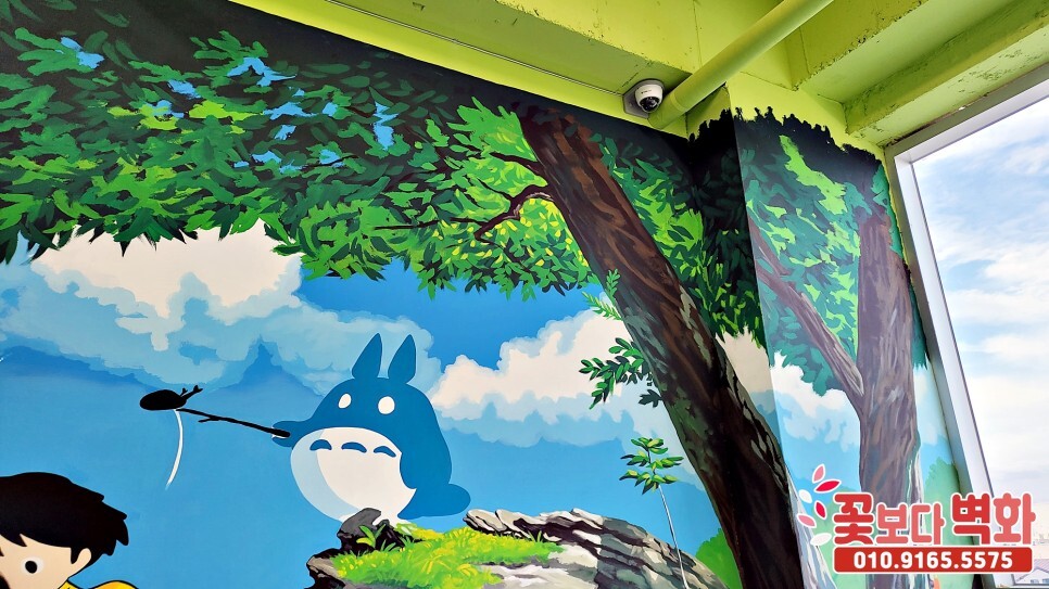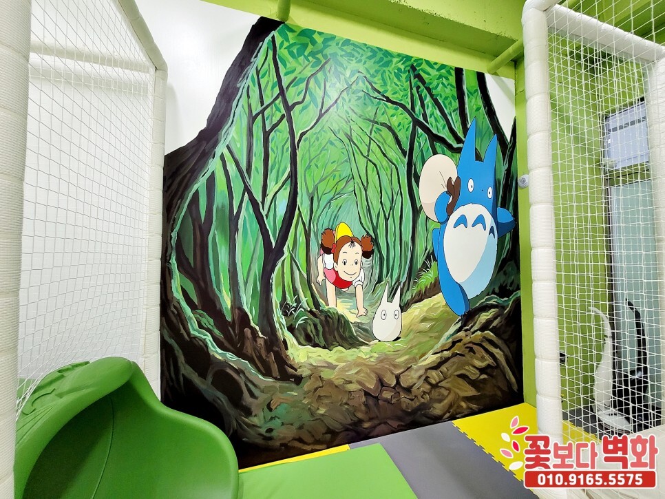 우리끼리 키즈카페 벽화마을에 그려진 토토로 애니메이션 포토존 인테리어벽화, 벽화시공, 벽화제작