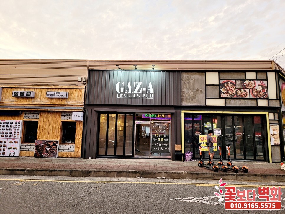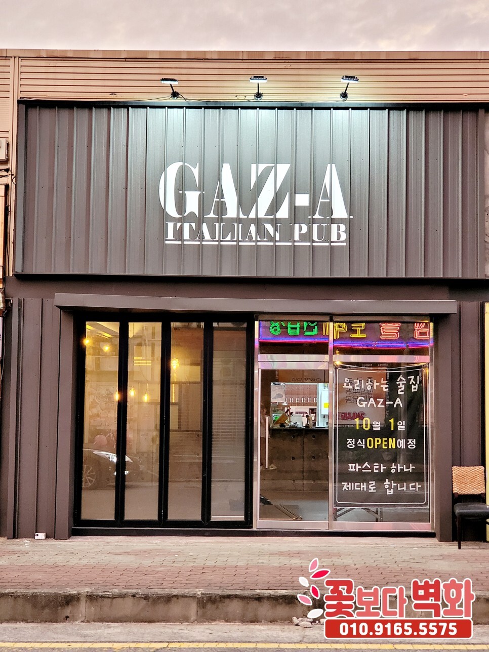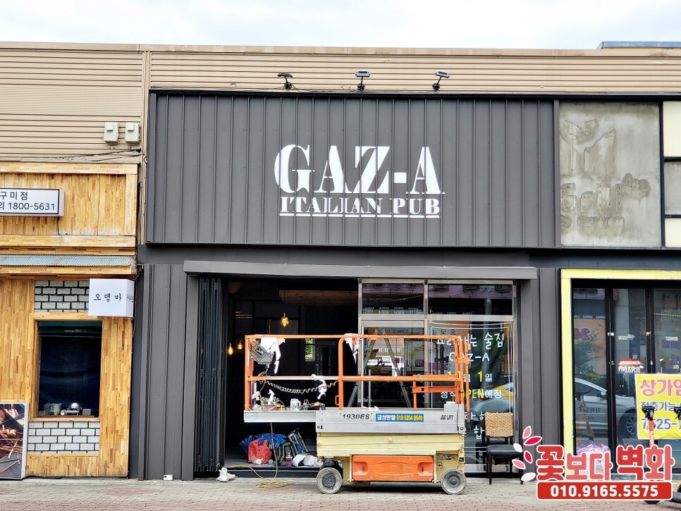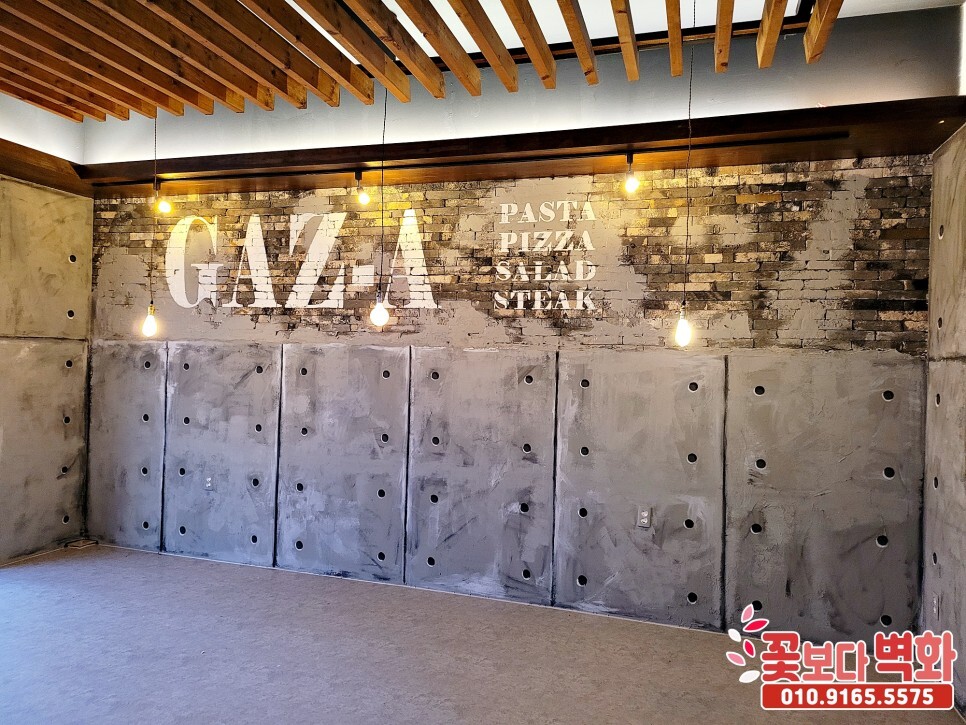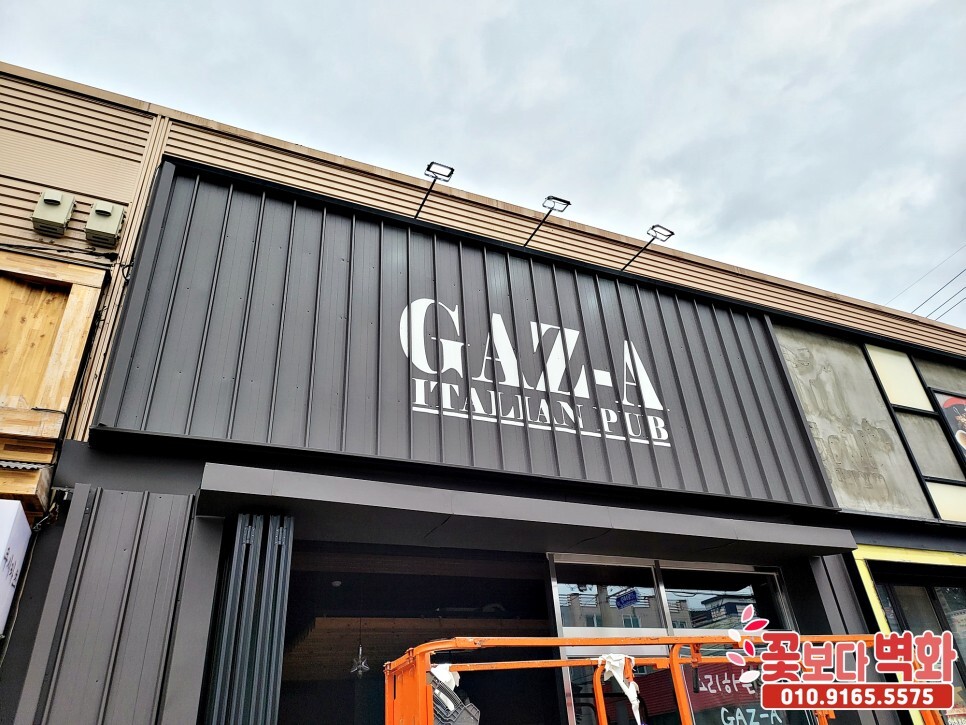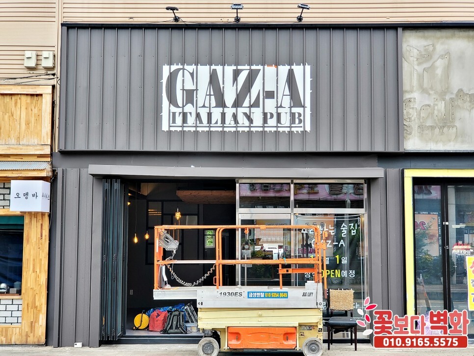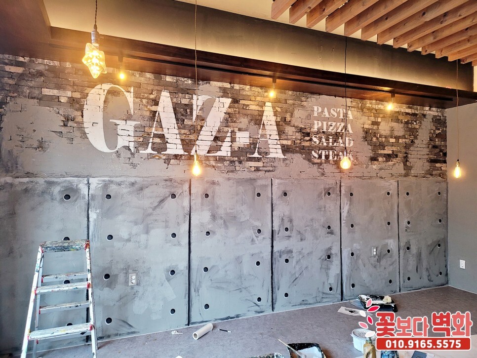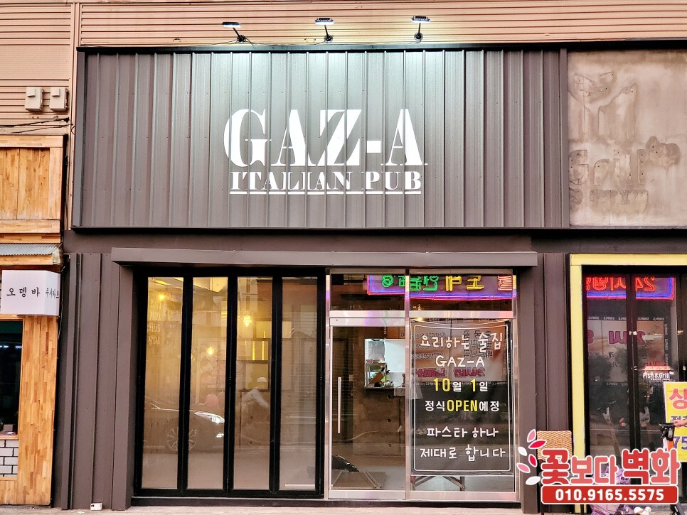 가즈아 이탈리안 음식점 펍 간판과, 내부 인테리어벽화를