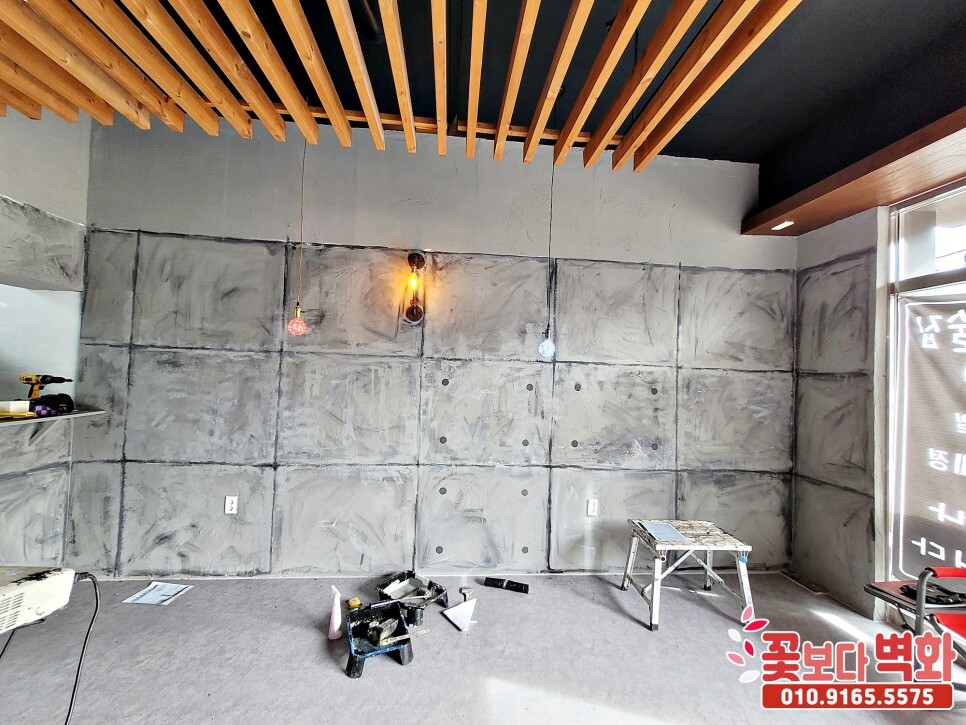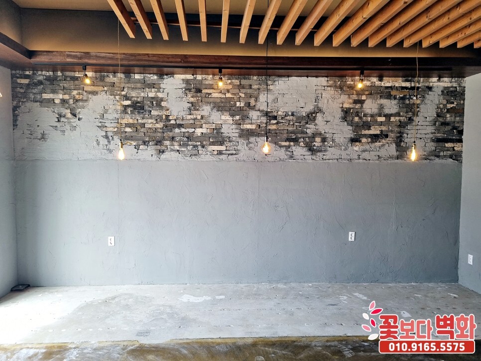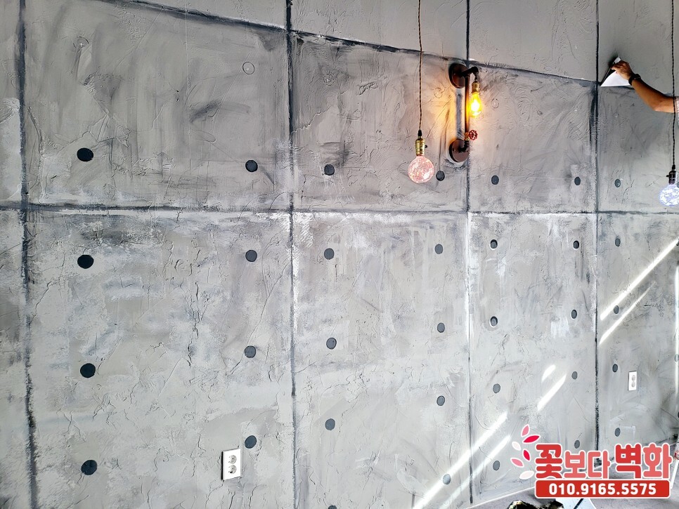 내부 인테리어 벽화에 노출 콘크리트의 모습을 그리는 건