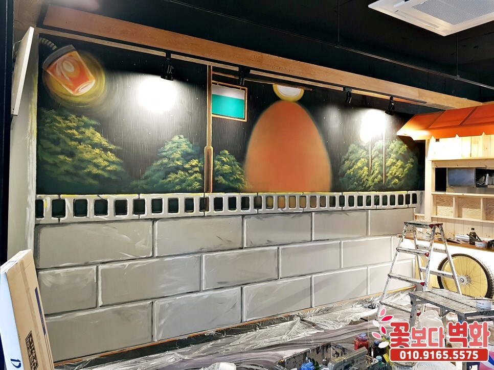 합리적인 비용에 짧은 인테리어 시공기간이 큰 장점인 벽화로 매장을 꾸며보세요^^