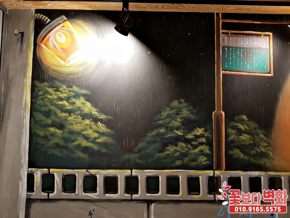 비 내리는 풍경의 복고 인테리어 벽화는 처음 작업을 진행하였는데요 :)