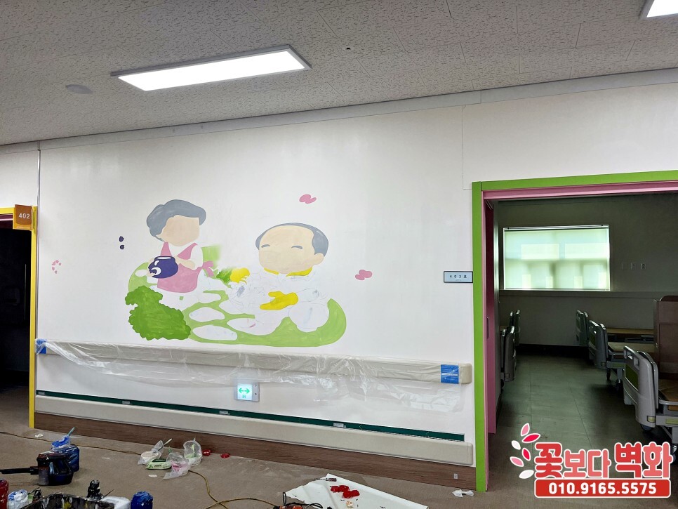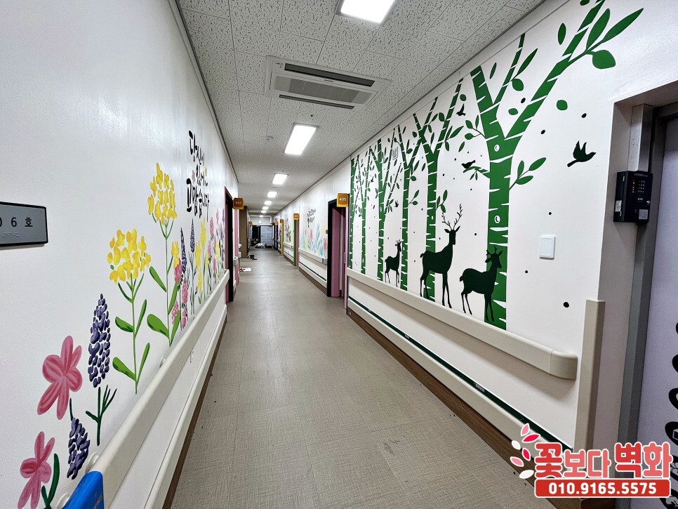 이렇게 벽화로 그림이 그려지니 요양병원이 아름답게 살아났습니다 :)