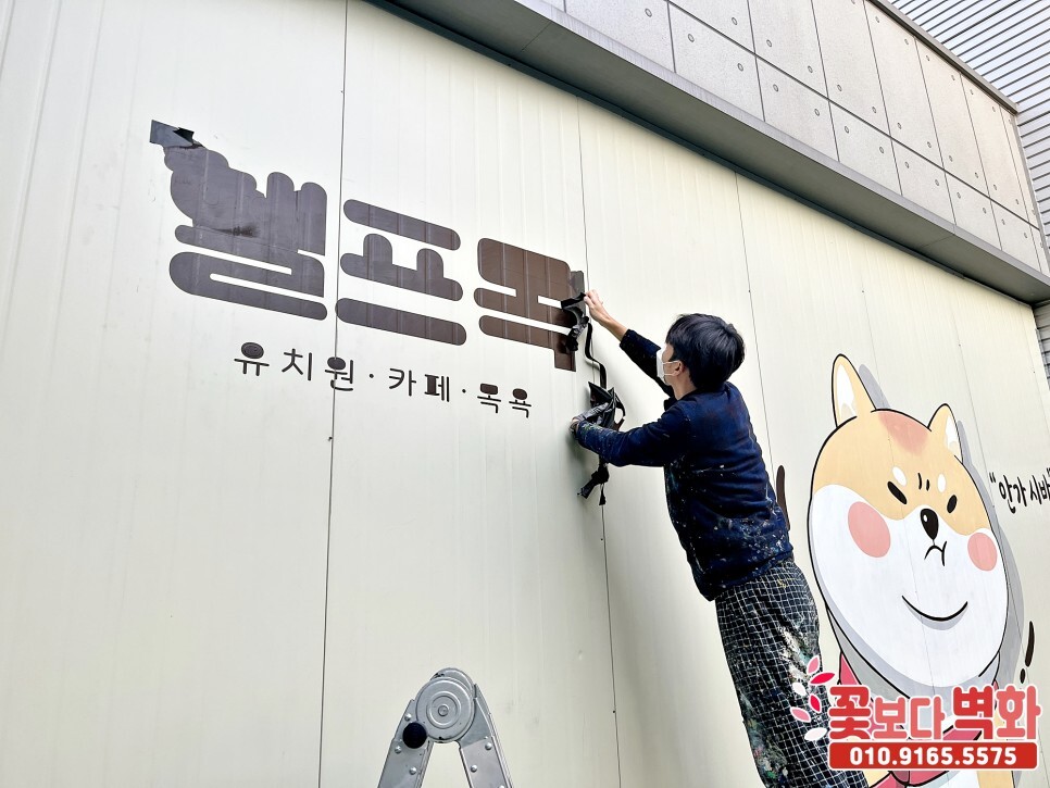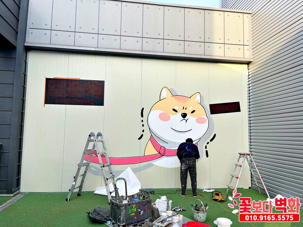 가기 싫어하는 시바견의 표정이 이번 벽화의 핵심!!!