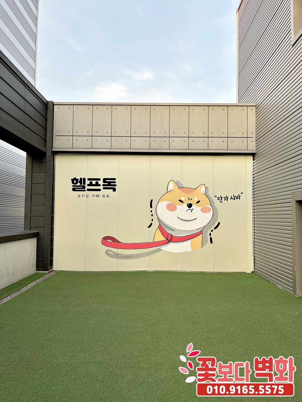 '헬프독' 애견카페에 그린 포토존 인테리어 벽화 제작후기 / 테라스벽화, 시바견, 꽃보다벽화