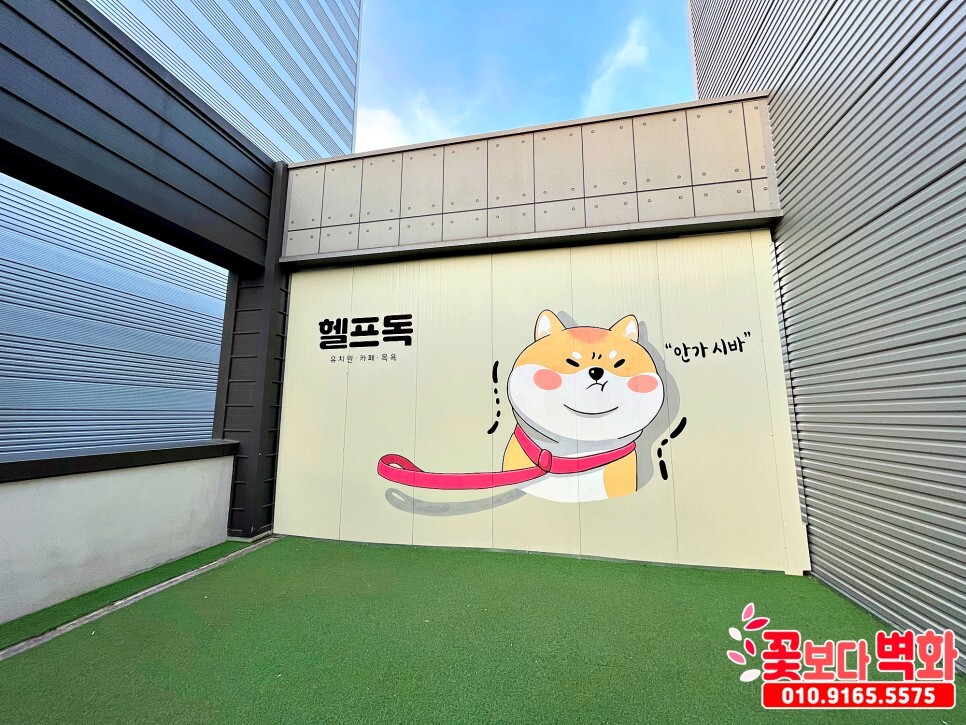 '헬프독' 애견카페에 그린 포토존 인테리어 벽화