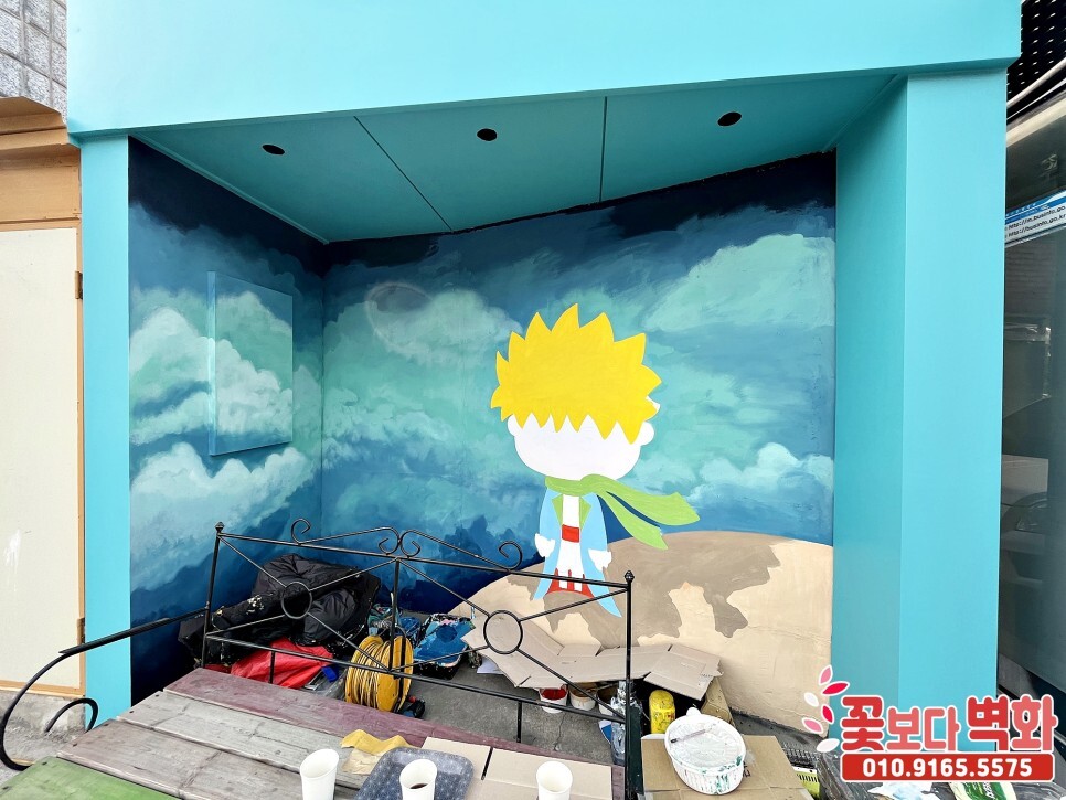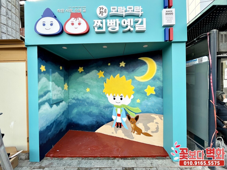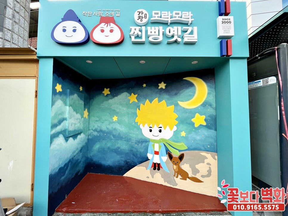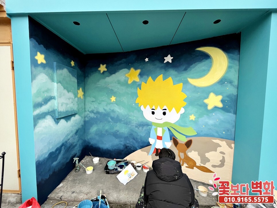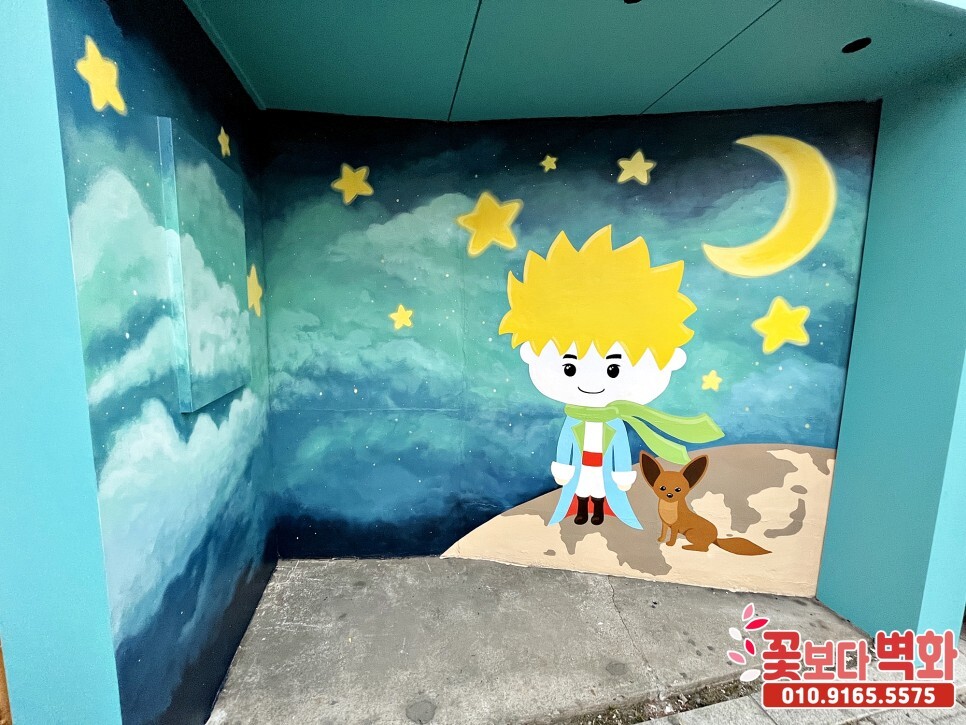 가창 찐빵옛길 정류장에 그려진 어린왕자 포토존벽화/ 캐릭터벽화, 벽화인테리어 성공적으로 마무리가 되었습니다.