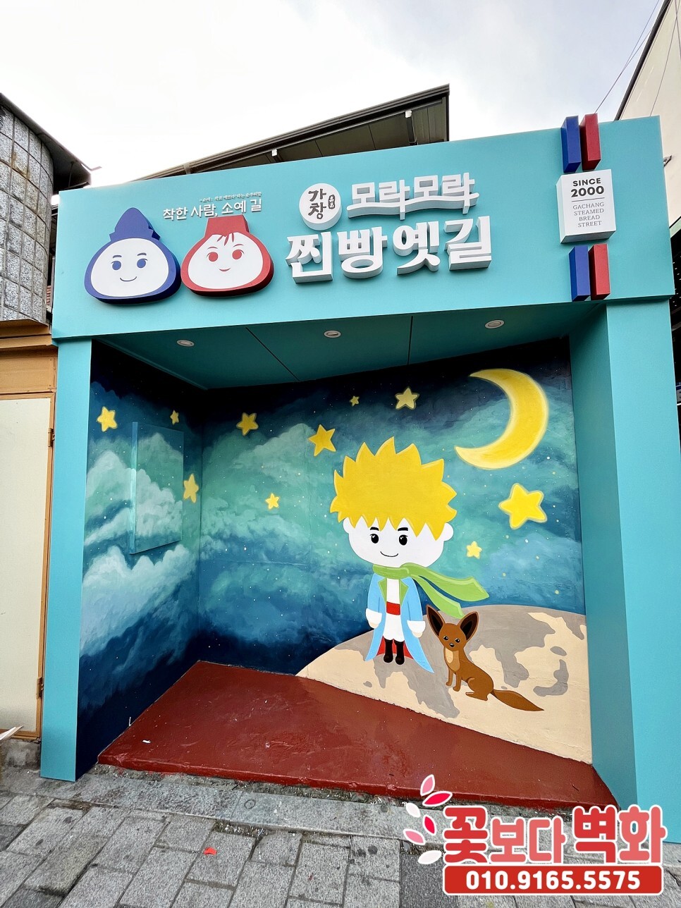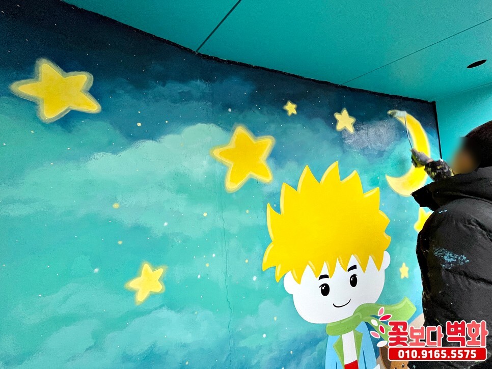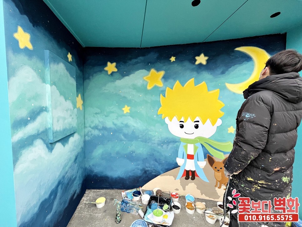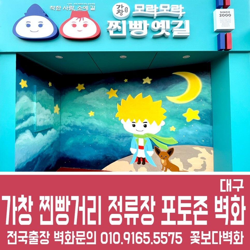 가창 찐빵옛길 정류장에 그려진 어린왕자 포토존벽화/ 캐릭터벽화, 벽화인테리어 성공적으로 마무리가 되었습니다.