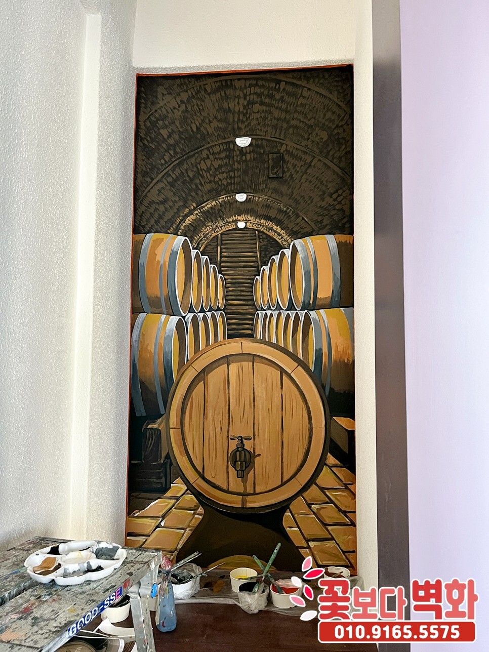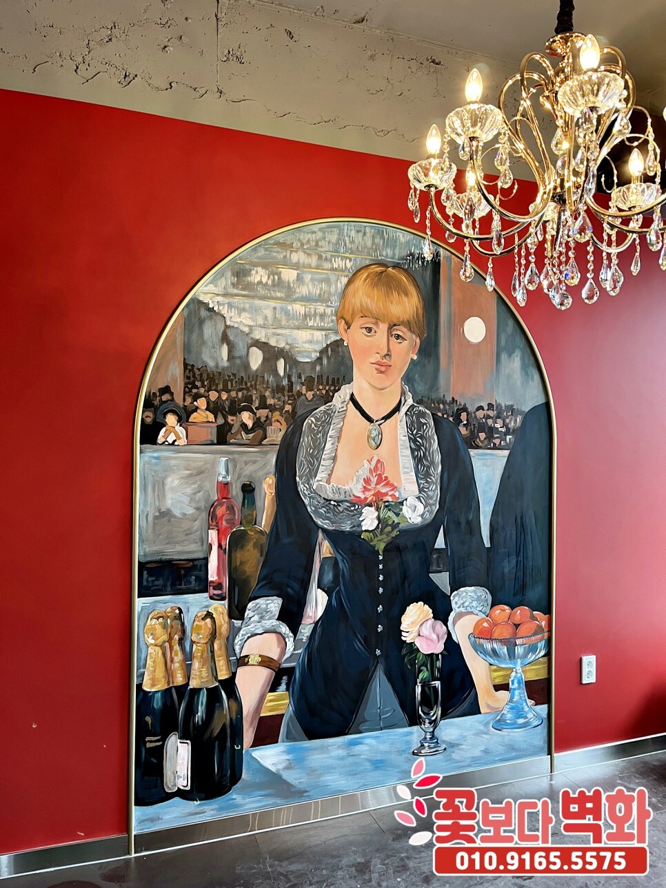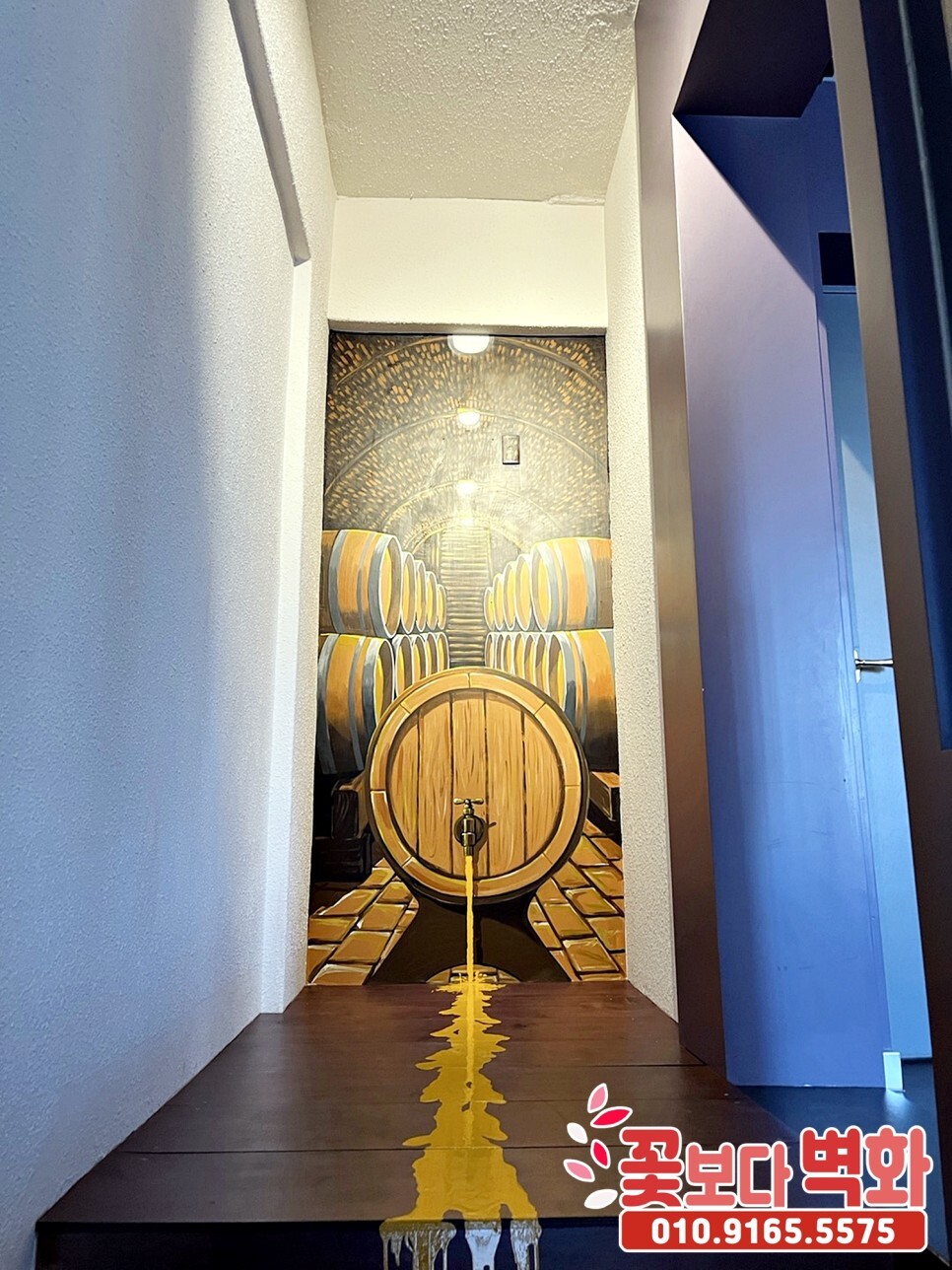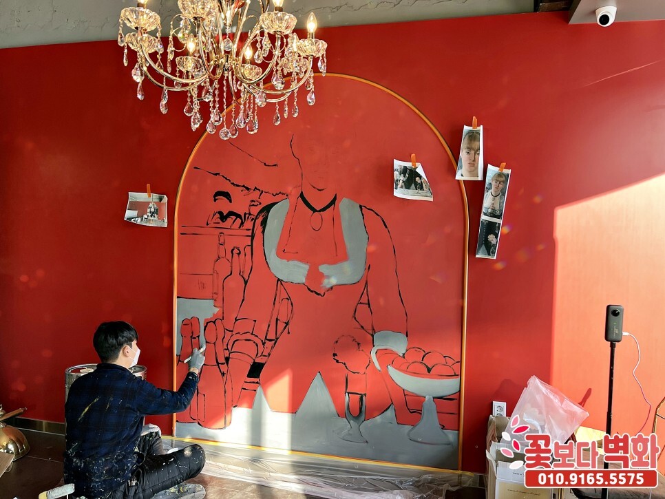 와인바에 그려진 고급스러운 명화 인테리어벽화/ 계단벽화, 포인트벽화, 포토존