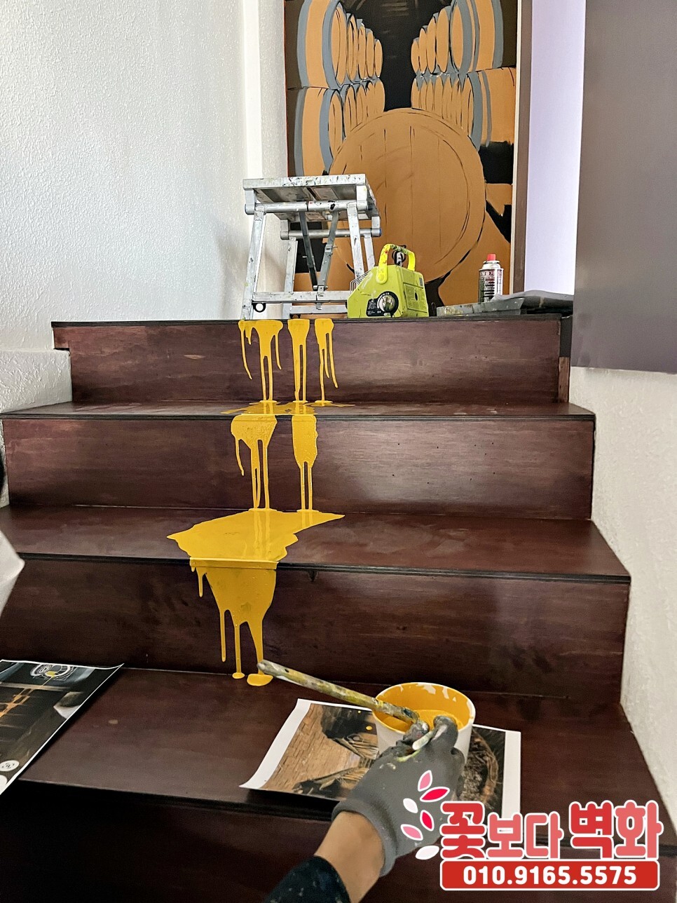 오늘 소개해 드릴 벽화는 와인바 내부에 그려진 명화와 계단 부분 포인트 벽화예요