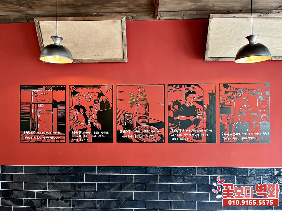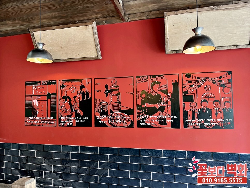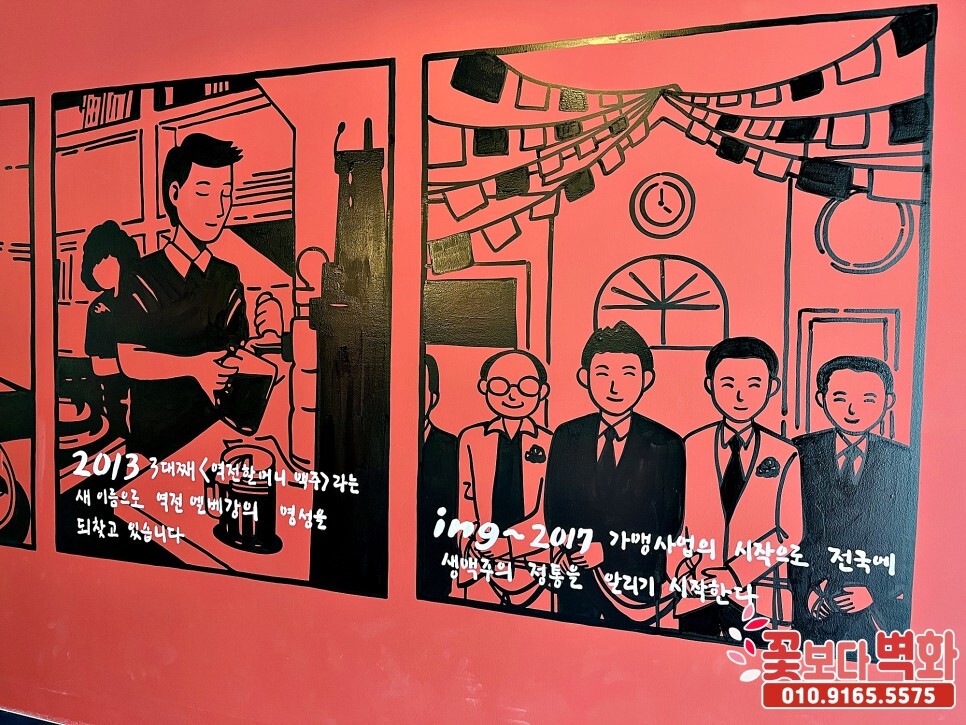 대구 만촌 역전할머니맥주 실내 인테리어벽화, 포인트벽화, 술집인테리어, 펍벽화, 꽃보다벽화