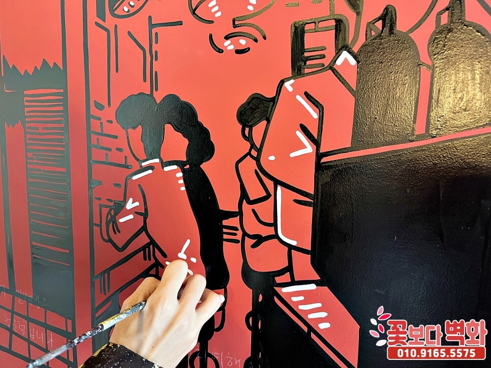 블랙과 레드의 컬러가 만나니 아주 재미난 벽화가