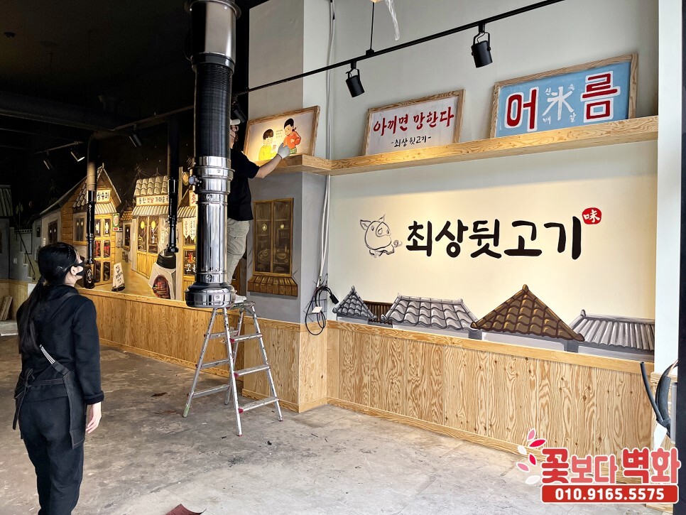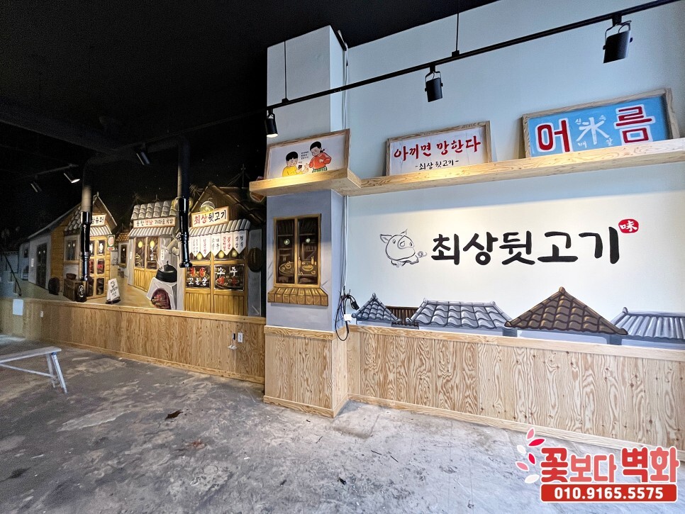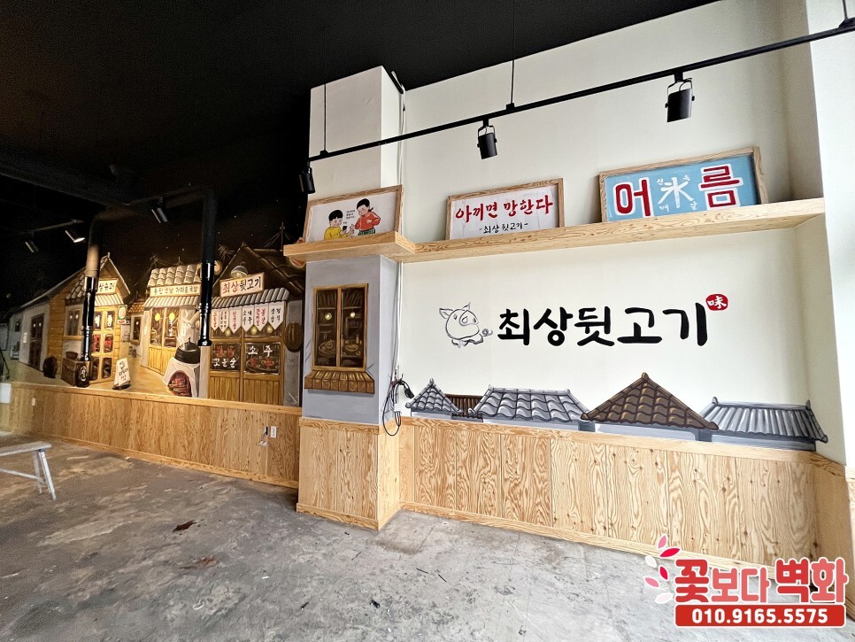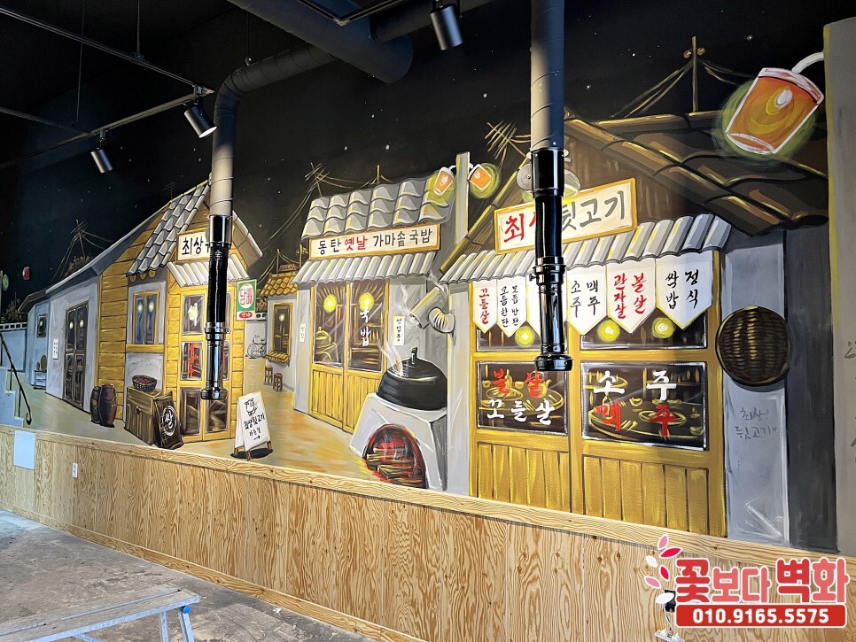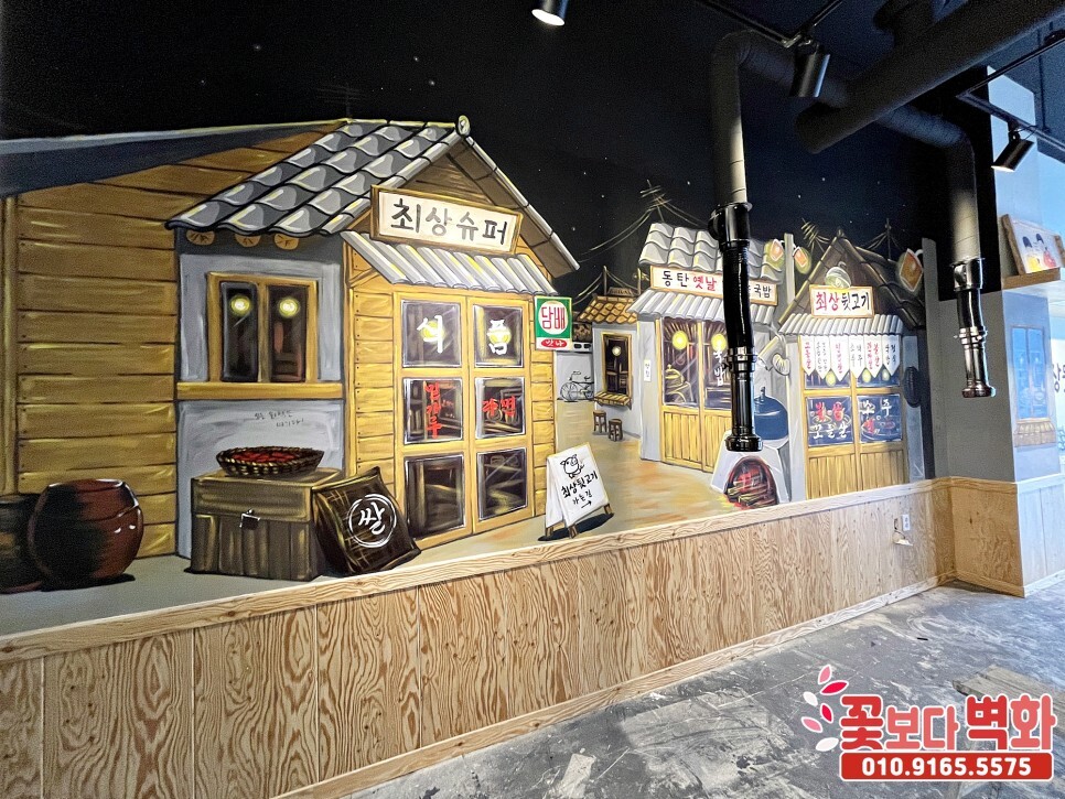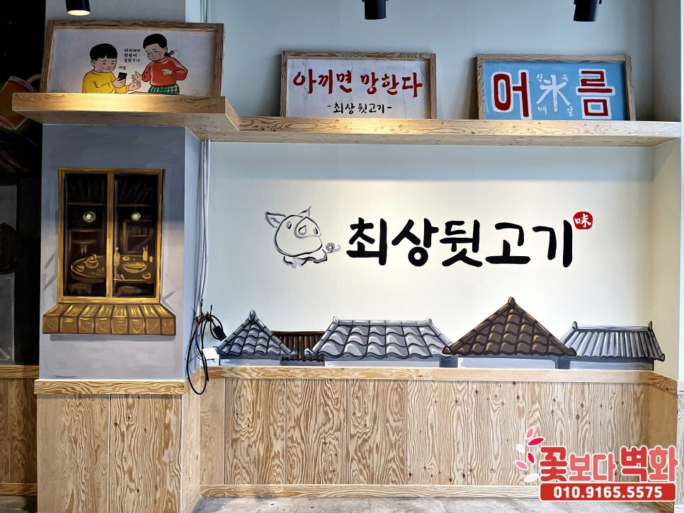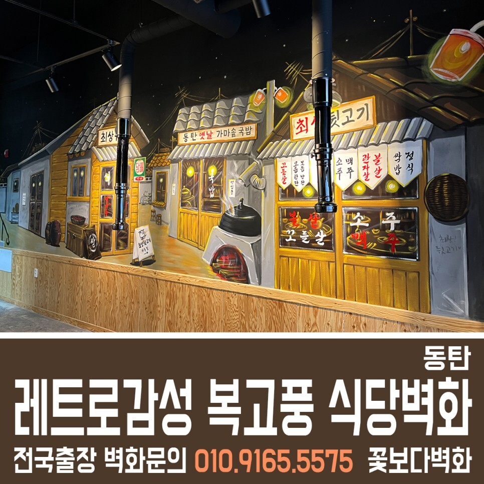 동탄 최상뒷고기, 레트로감성으로 꾸며진 옛날 복고풍 식당벽화, 인테리어벽화, 7080 포차벽화