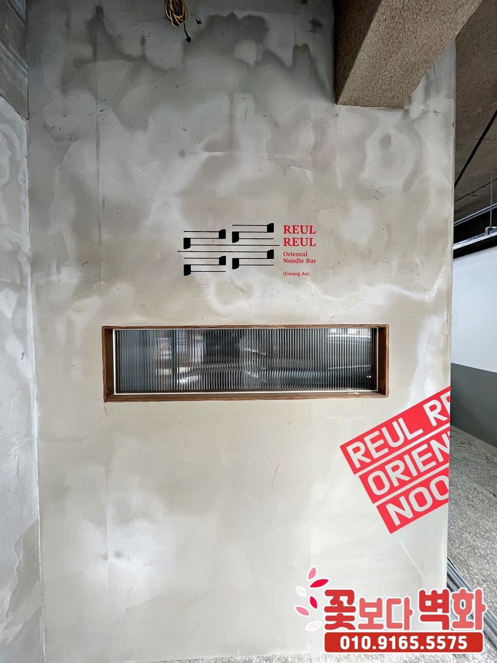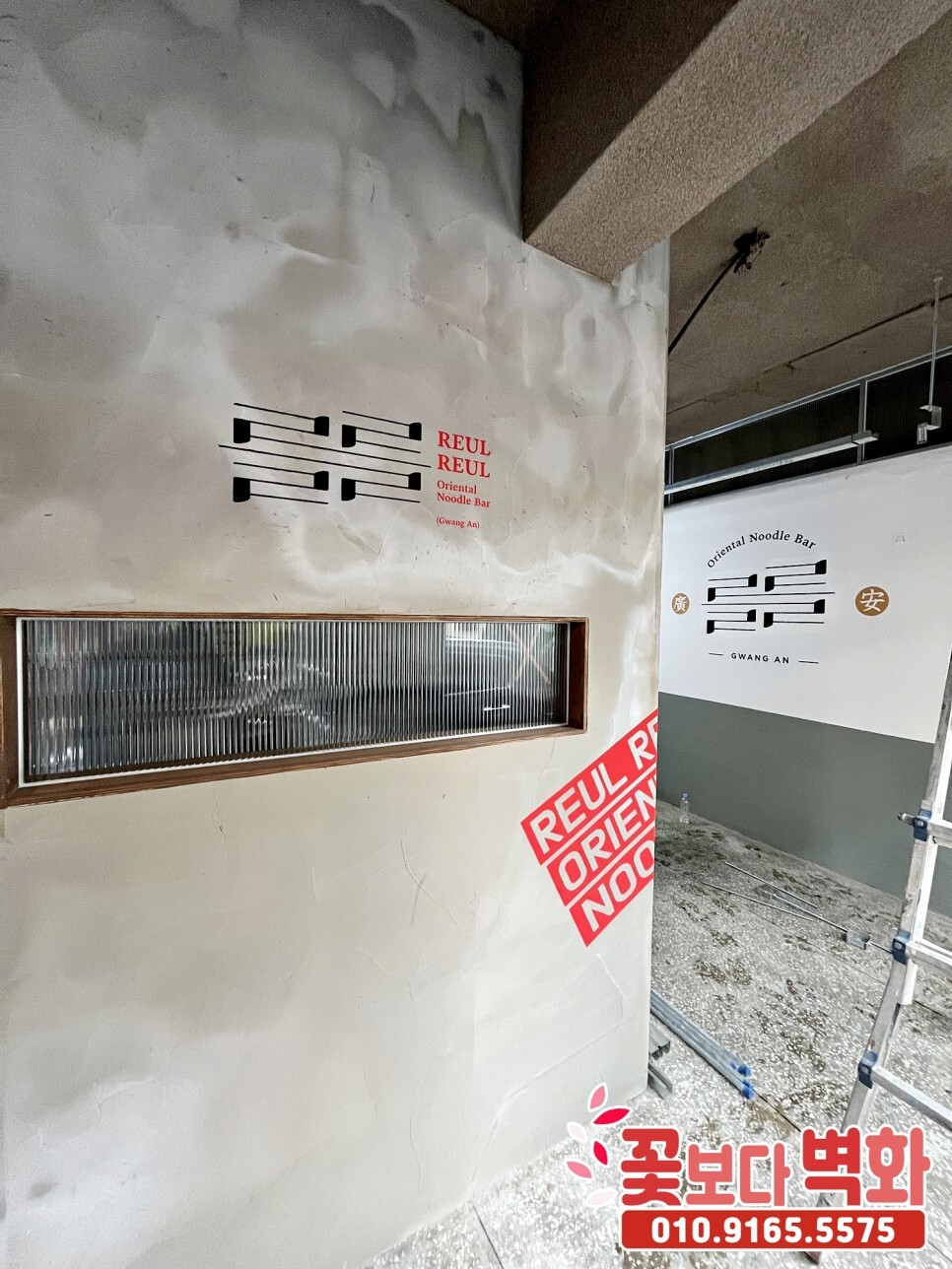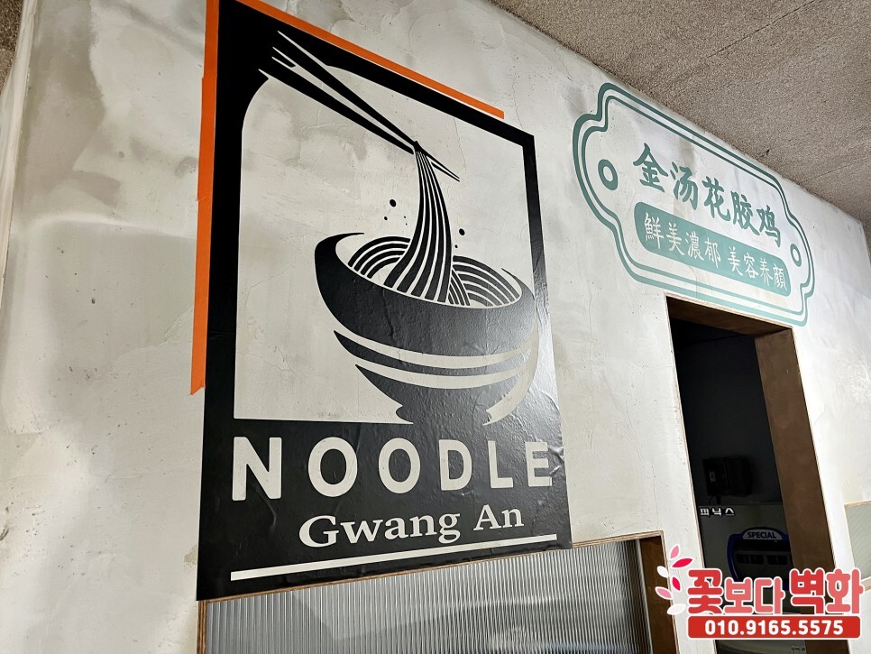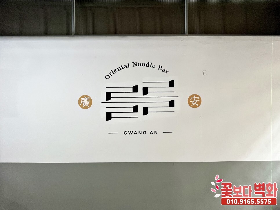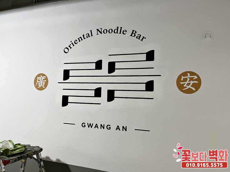 부산 광안리 깔끔한 스텐실 기법으로 꾸며진 를를 라멘집 인테리어 벽화