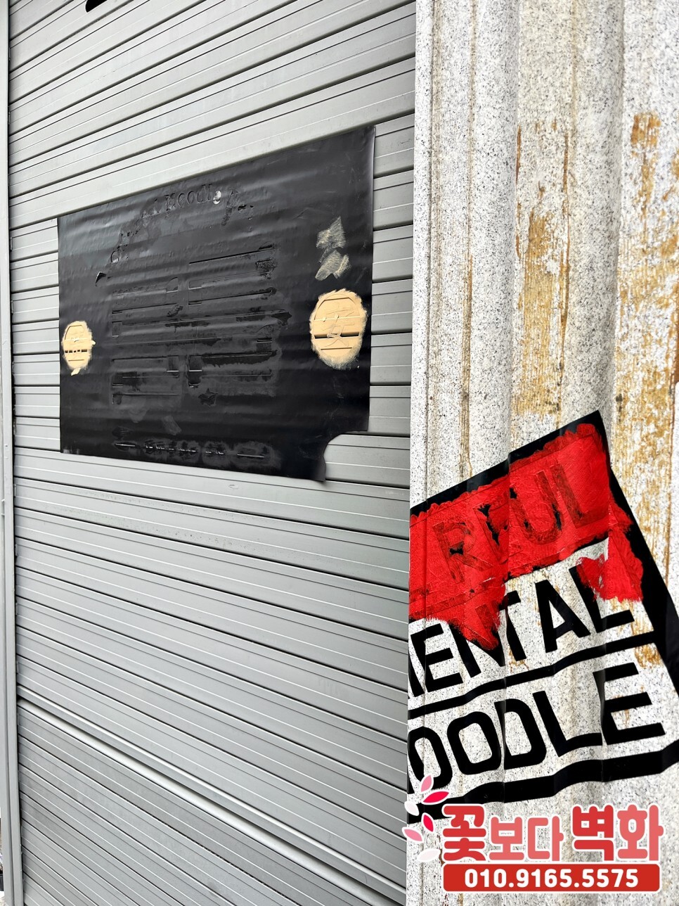 울퉁불퉁한 셔터 문과 벽면에도