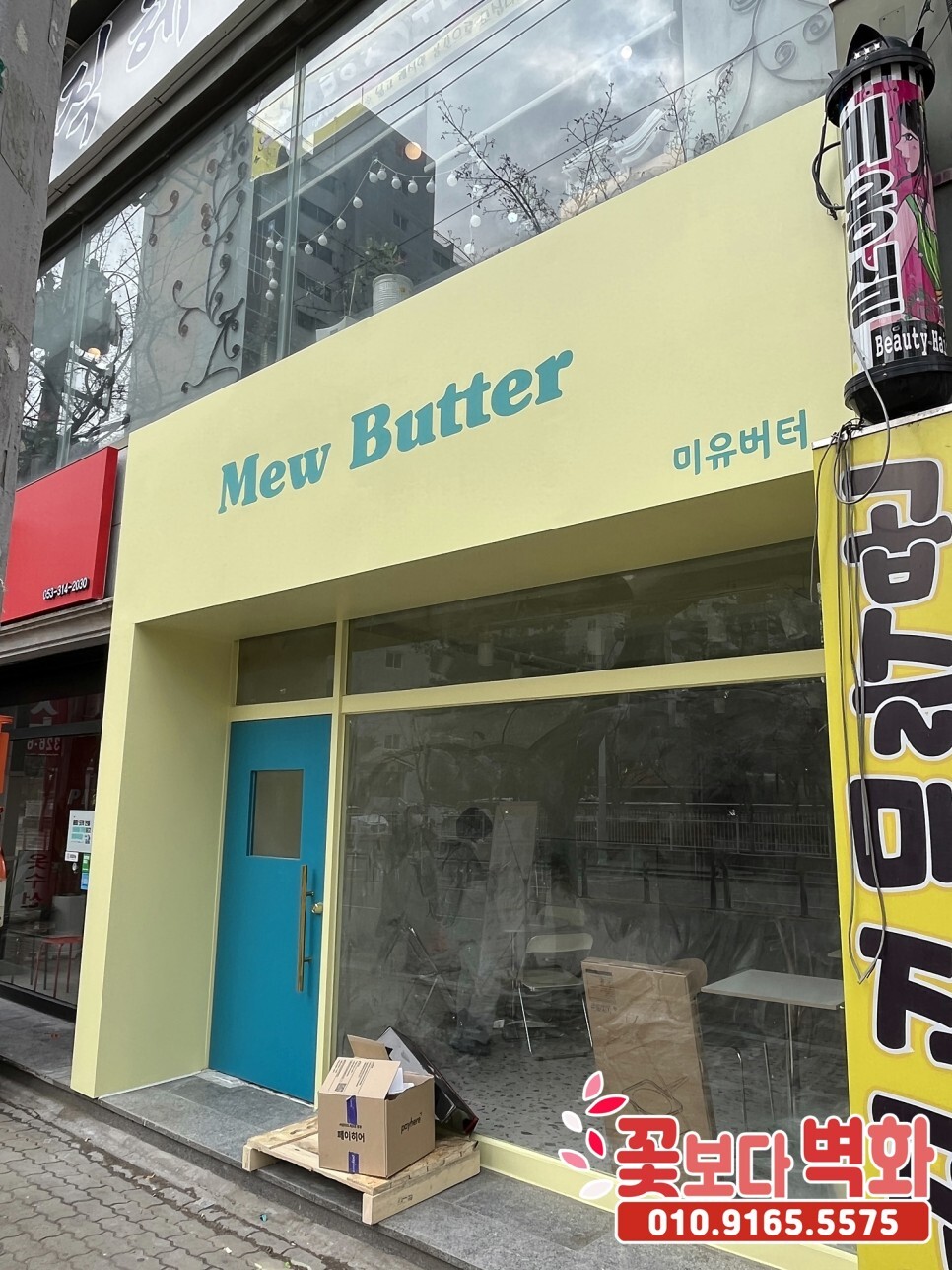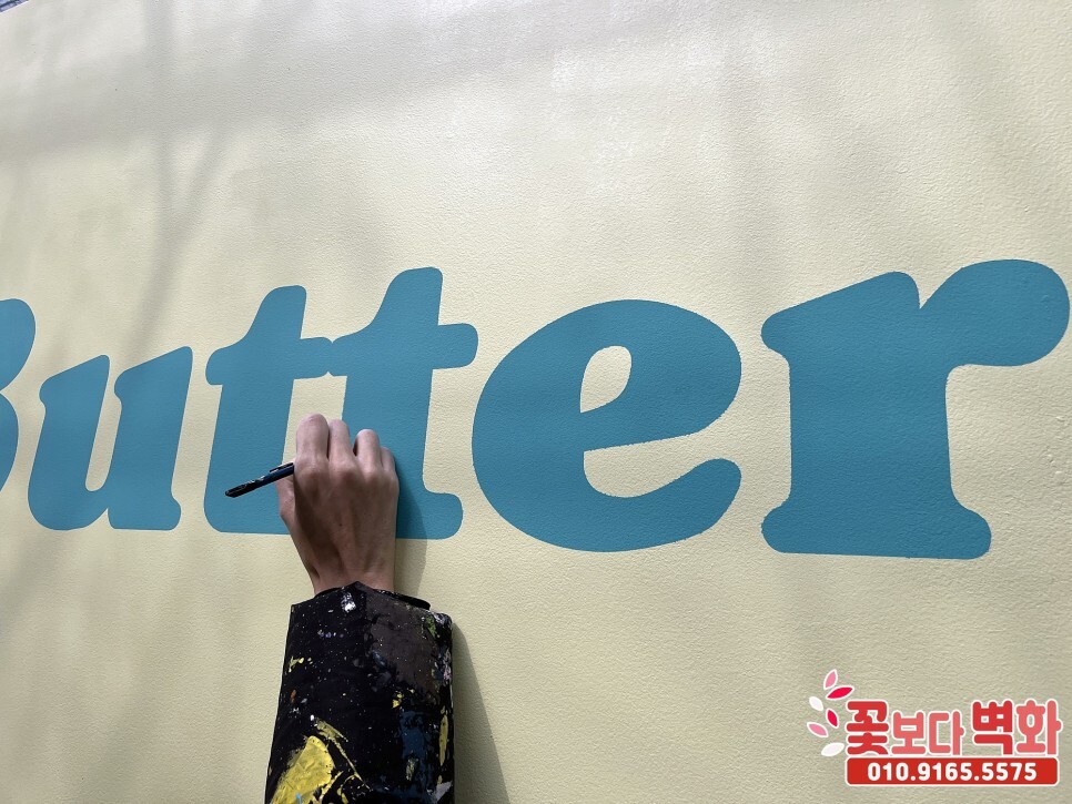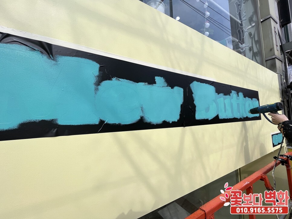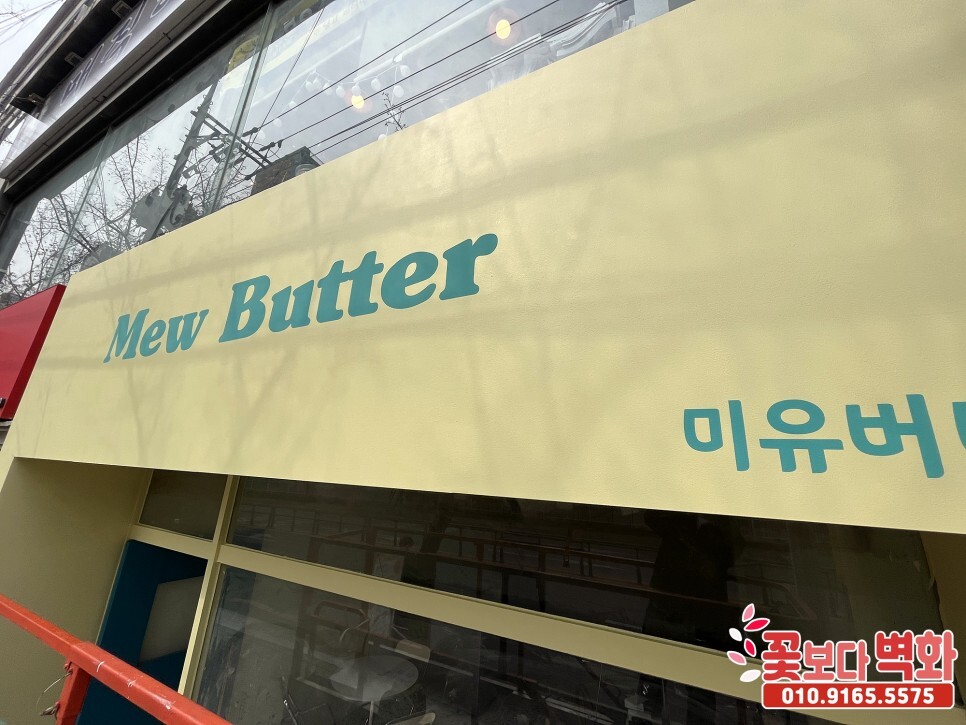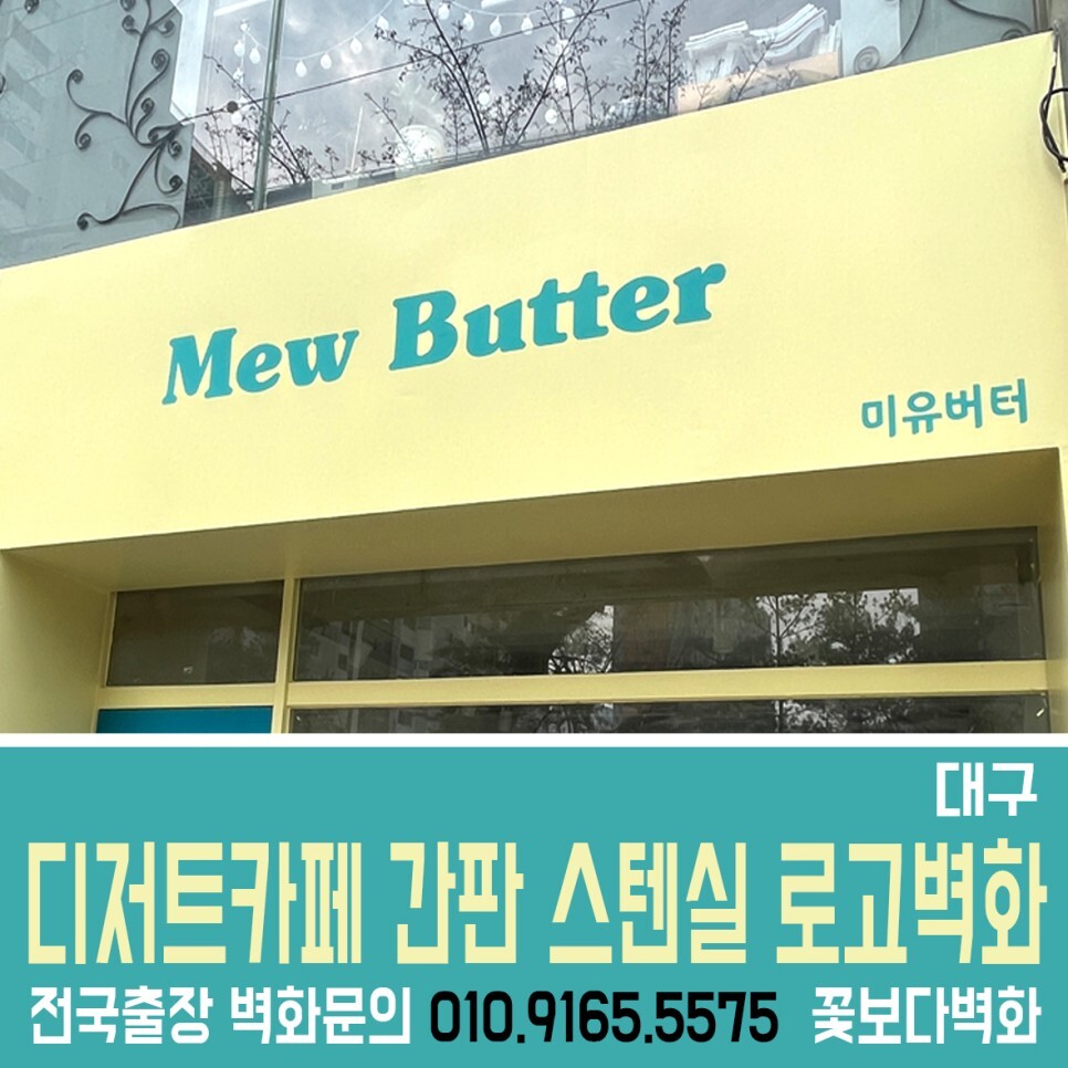 디저트카페 '미유버터'에 그려진 예쁜 스텐실 로고벽화, 인테리어벽화, 간판디자인, 꽃보다벽화