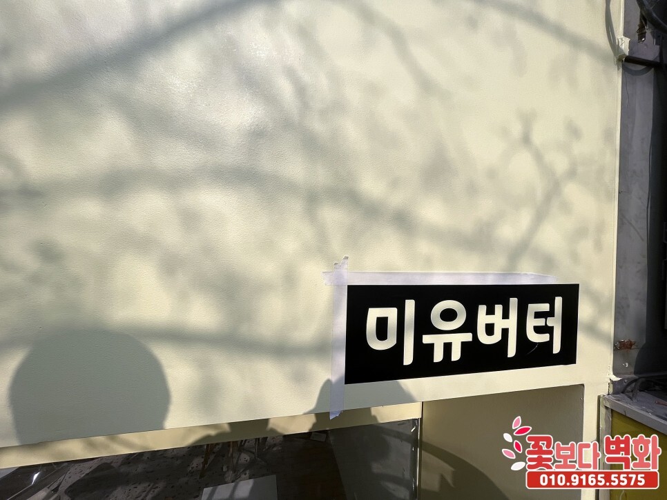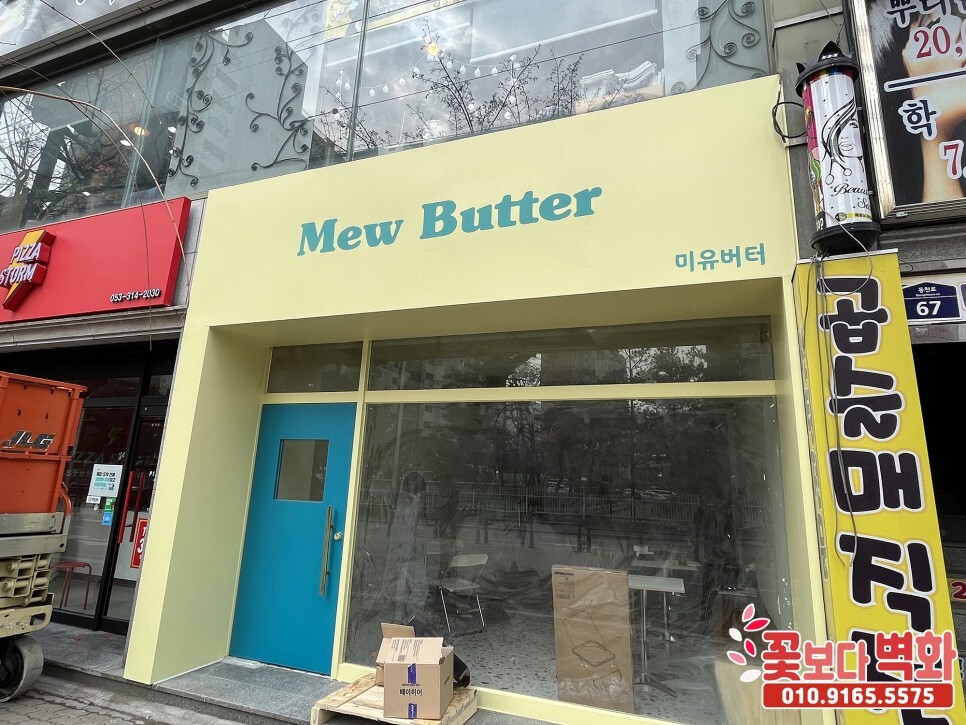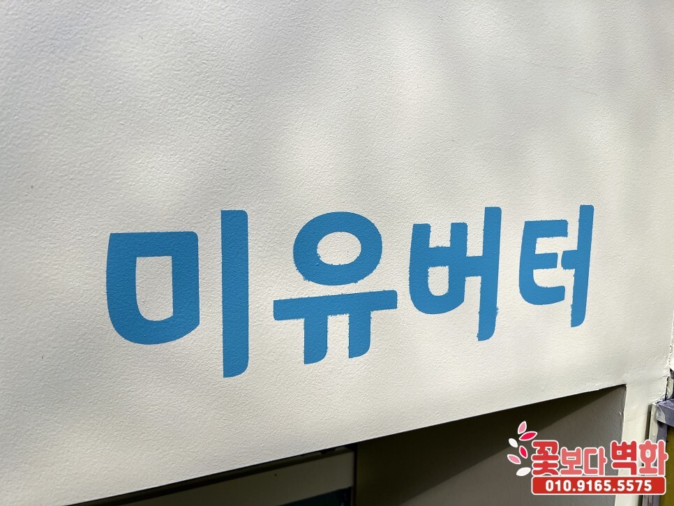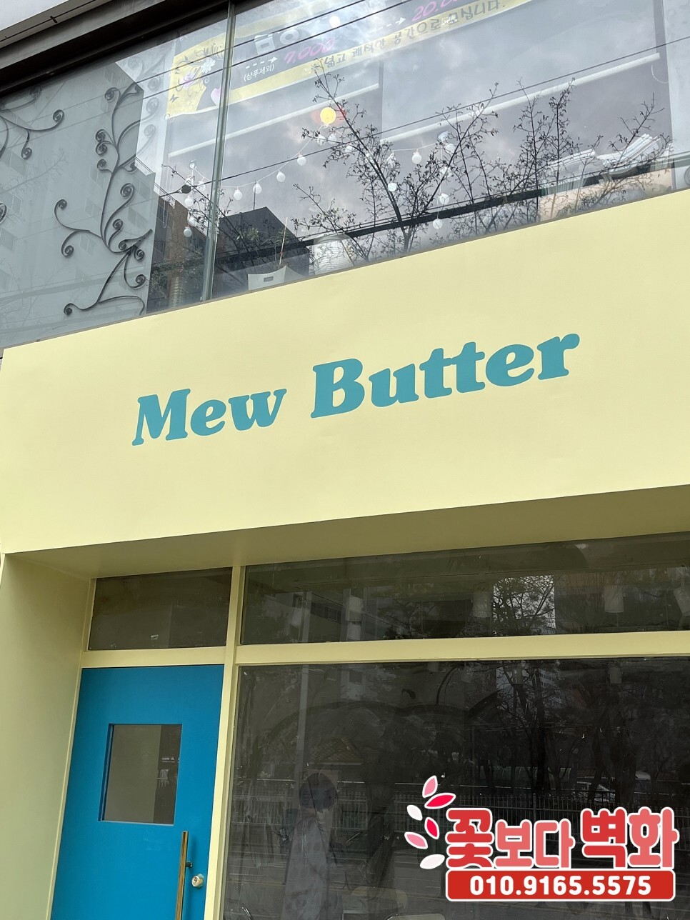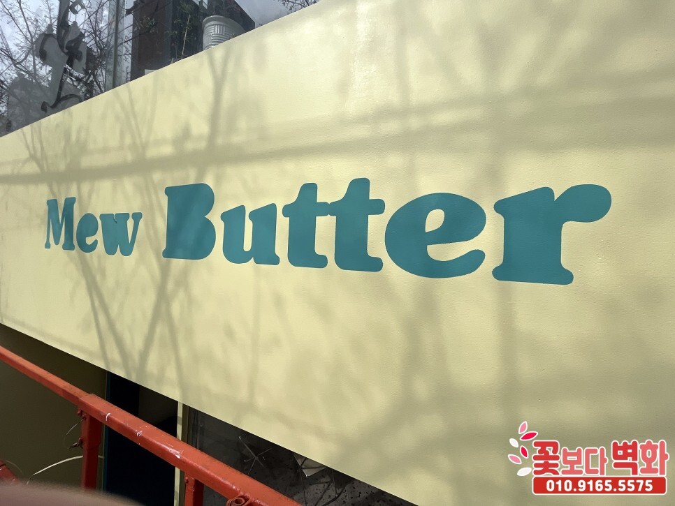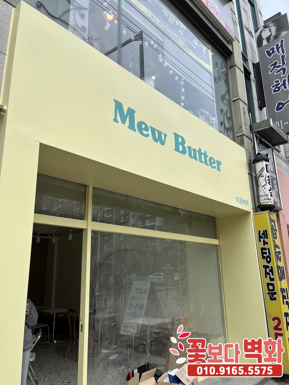 디저트카페 '미유버터'에 그려진 예쁜 스텐실 로고벽화, 인테리어벽화, 간판디자인, 꽃보다벽화