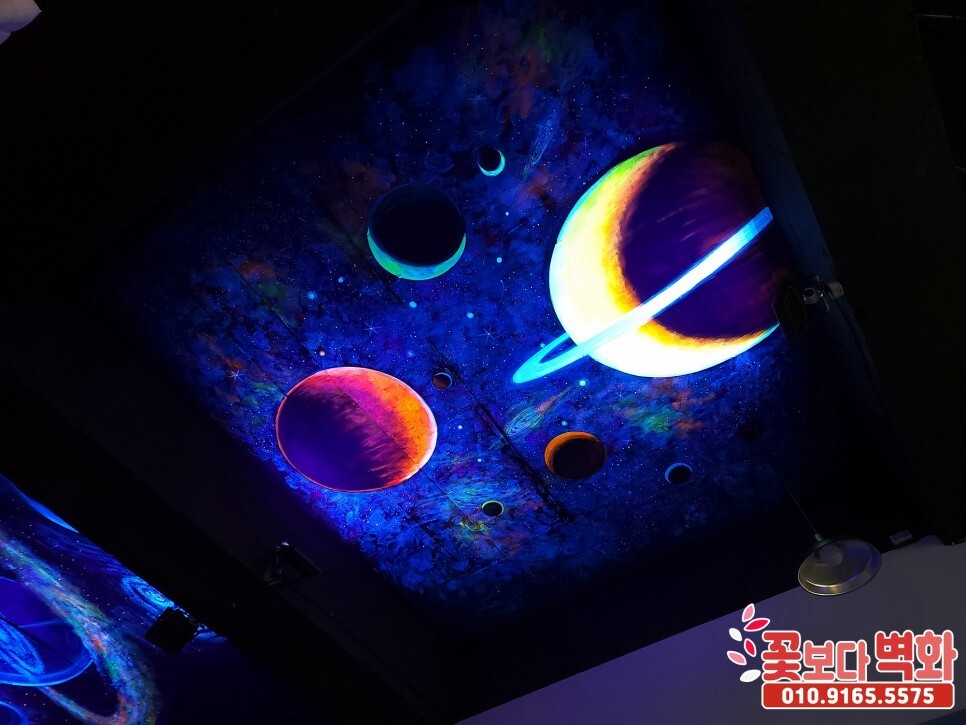 청주에 위치한 우리끼리 별빛마을 천장에 그려진 형광벽화입니다.