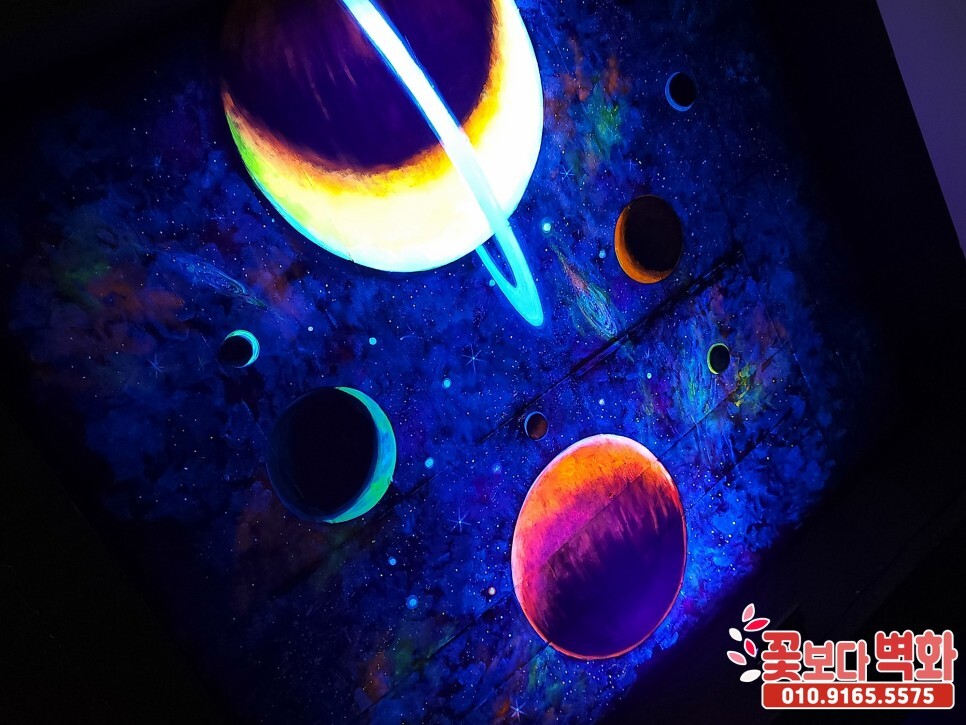 루미나이트 형광벽화는 블랙라이트라는 특수한 조명에만 반응하는 형광물질을 발라서
