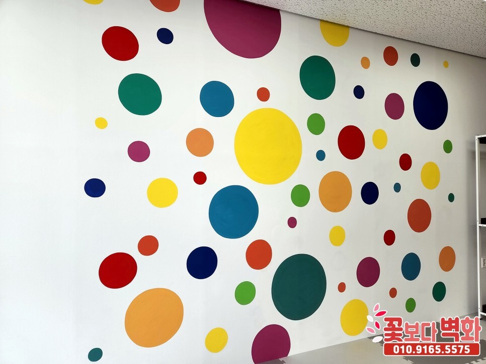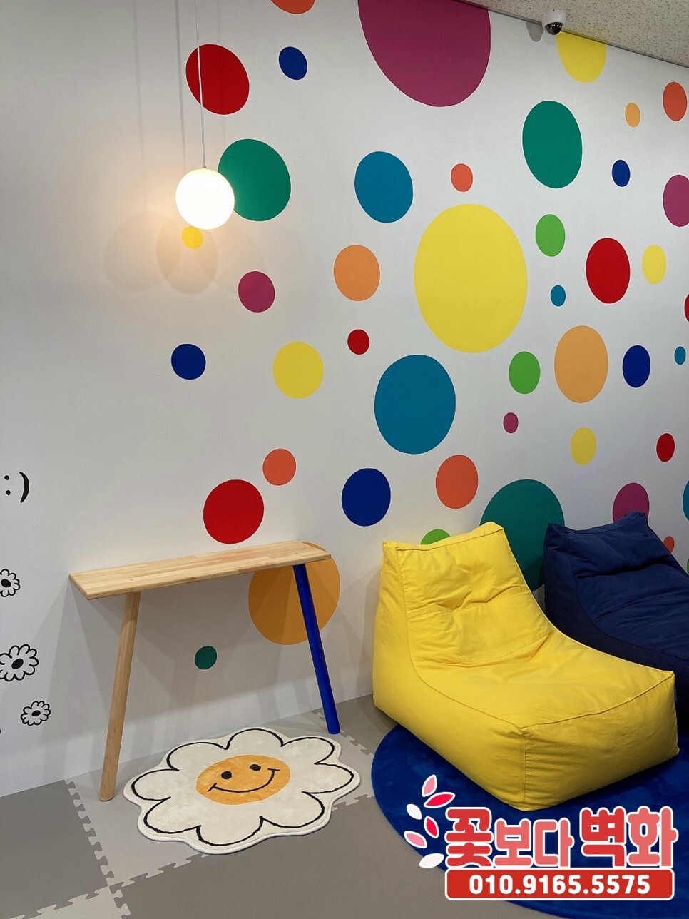 동그라미 패턴에도 여러 가지 색으로 벽면을 가득 채워주고 있습니다 :)