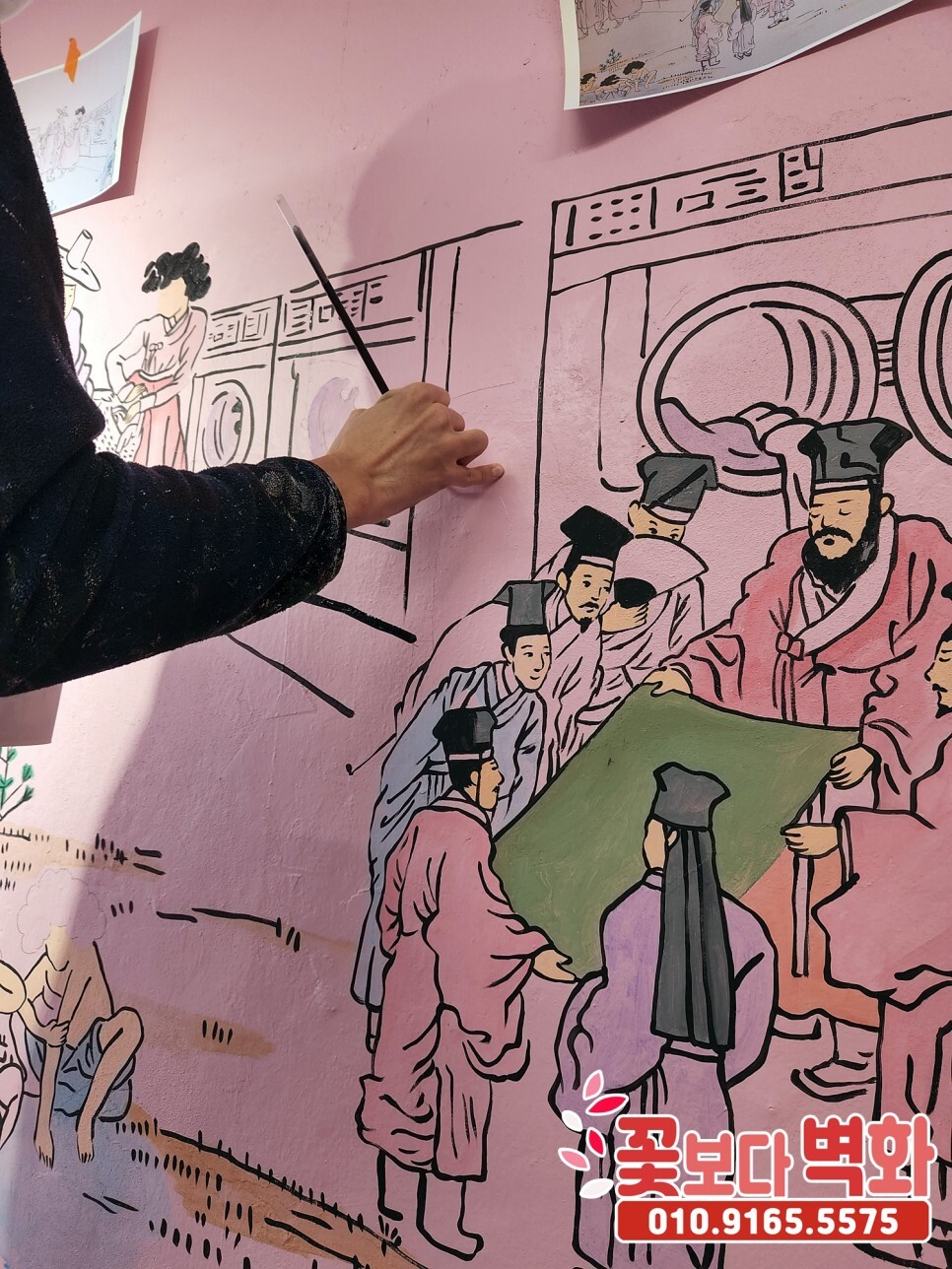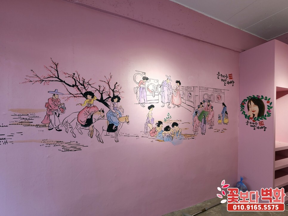 대구 문혜주빨래방 동양화스타일의 내부 인테리어벽화/ 꽃보다벽화, 캐릭터벽화, 포인트벽화