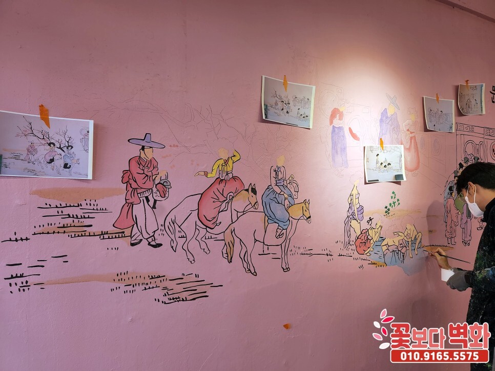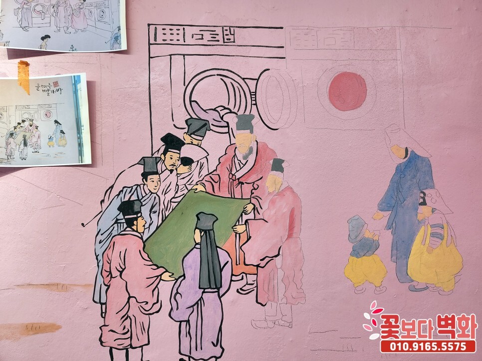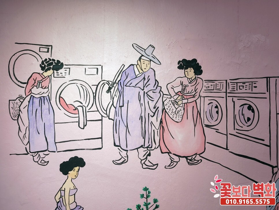 문혜주빨래방 동양화 스타일의 재미있는 인테리어벽화 제작