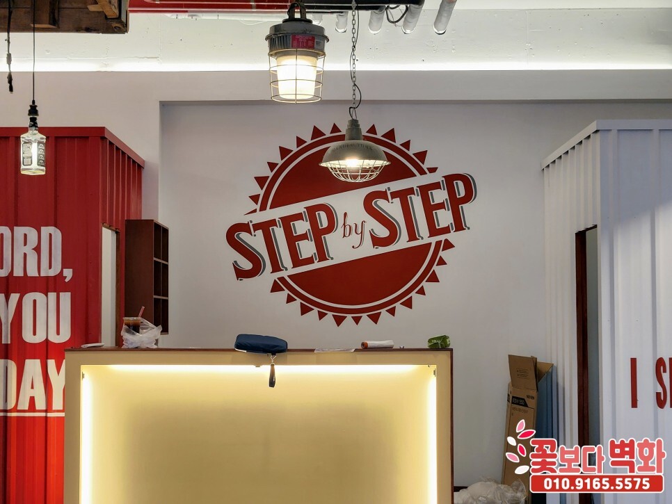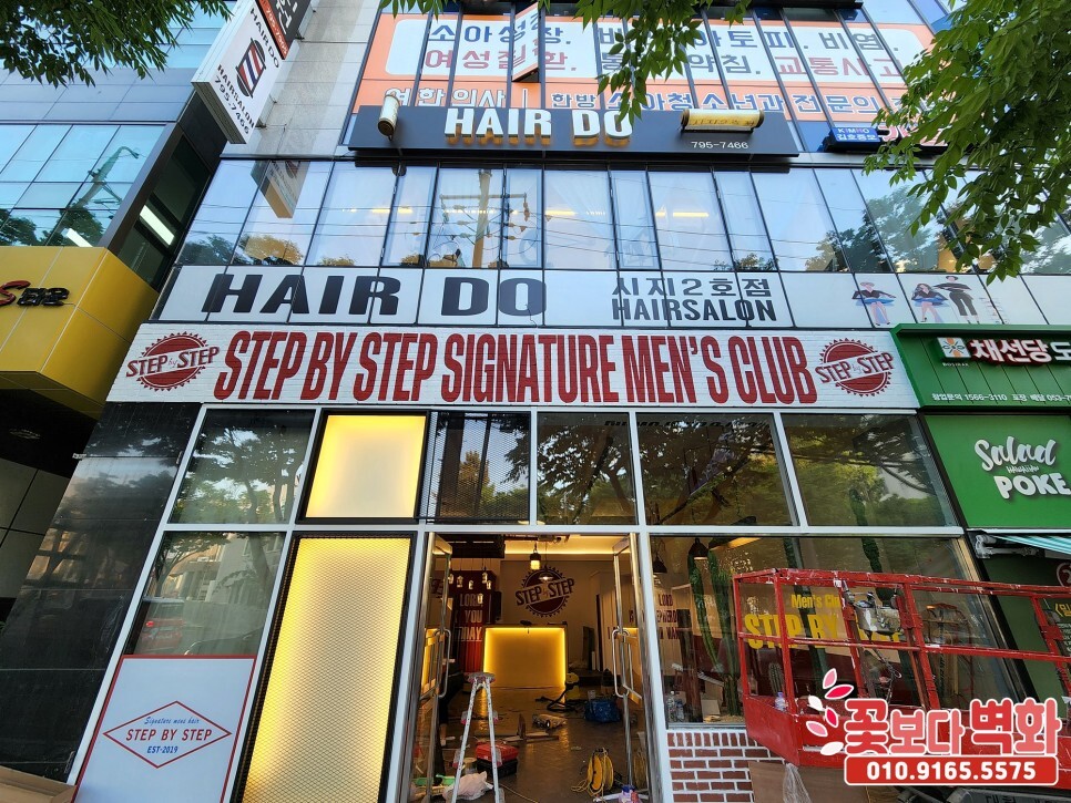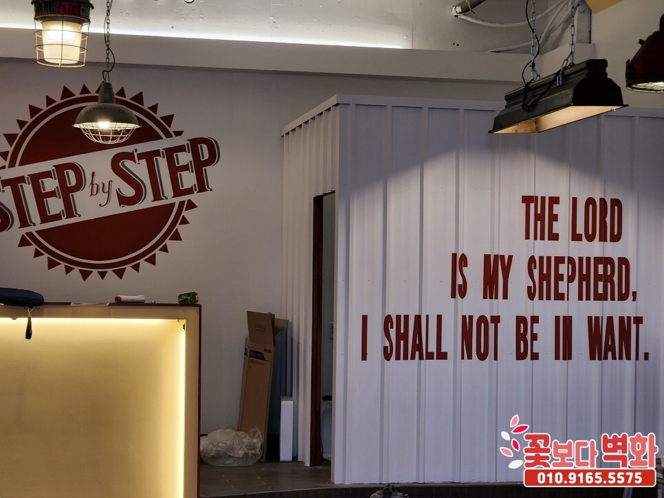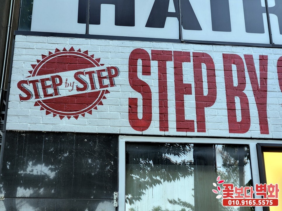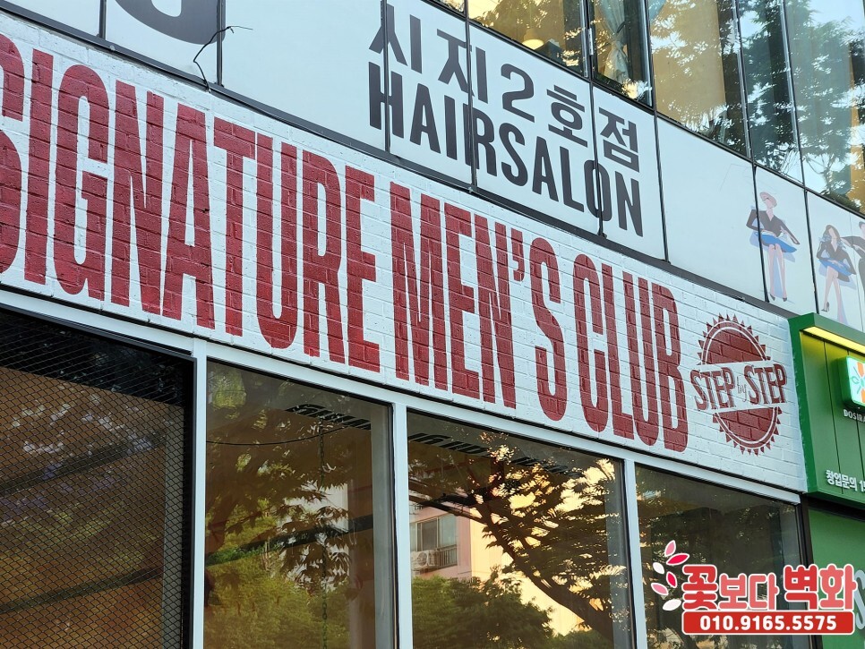 대구 스텝바이스텝 바버샵 간판, 내부 스텐실 로고 글자벽화/ 꽃보다벽화