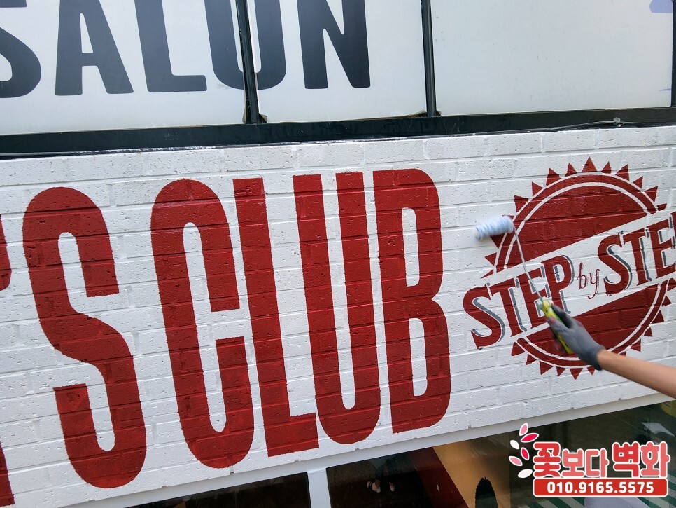 대구 시지 스텝바이스텝 바버샵 간판과 내부에 그려진 스텐실 로고 글자 인테리어벽화/ 간판벽화, 스텐실간판