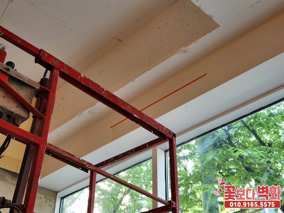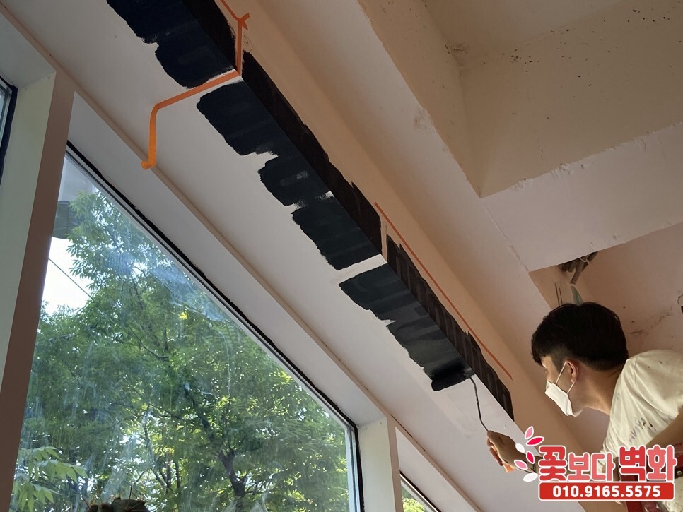 다음으로는 천장에 꺾이는 부분에 스텐실 작업을 원하셔서