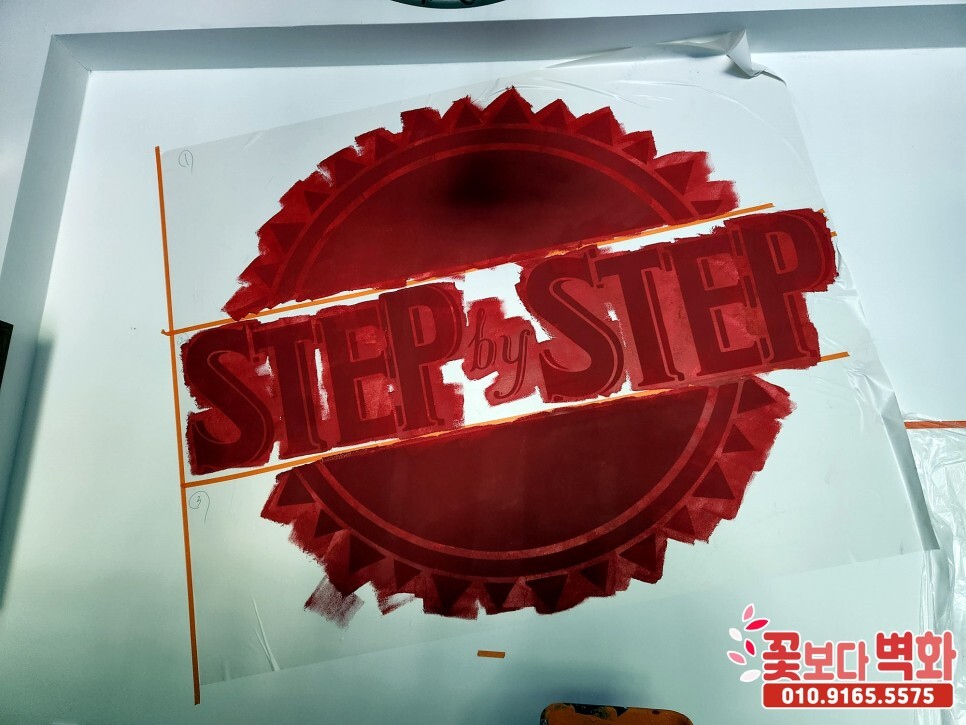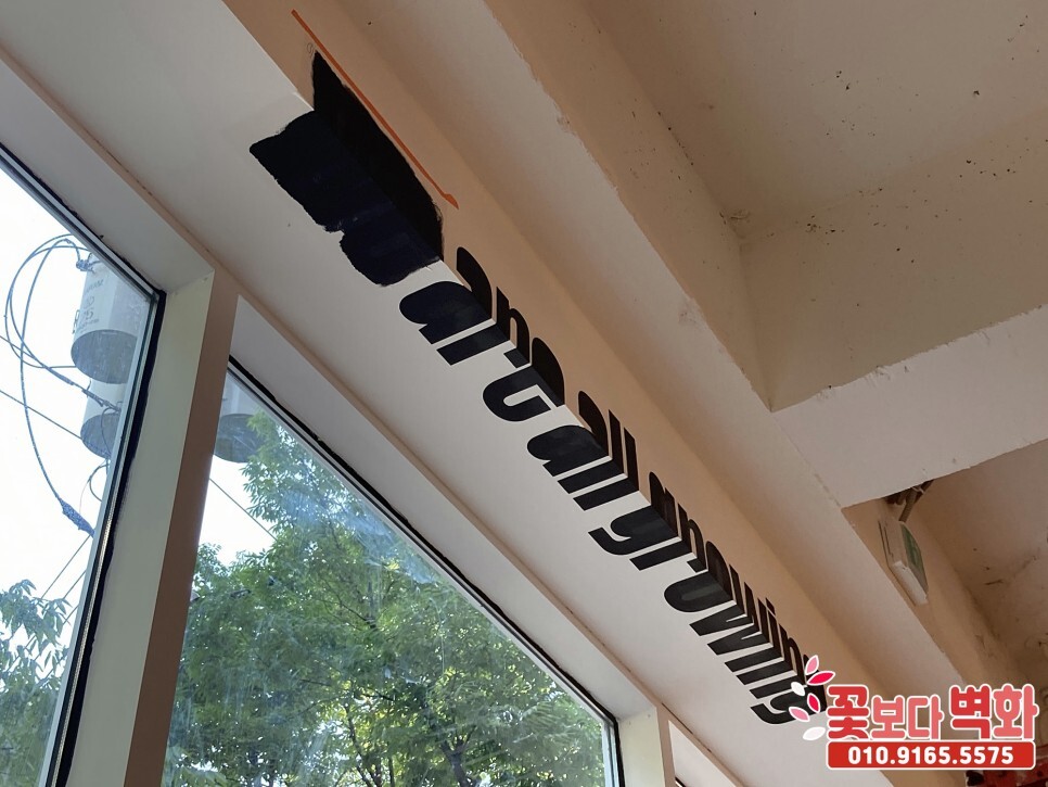 문구가 시트지로 스텐실 작업이 진행되고 있습니다 :)