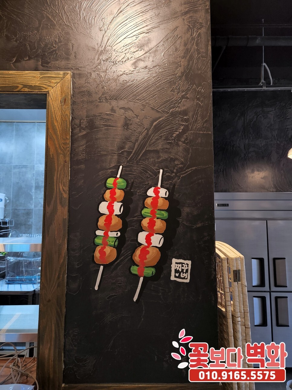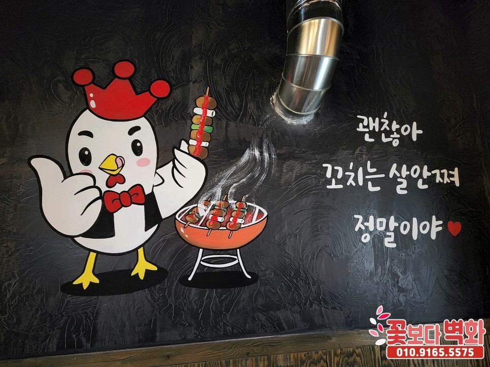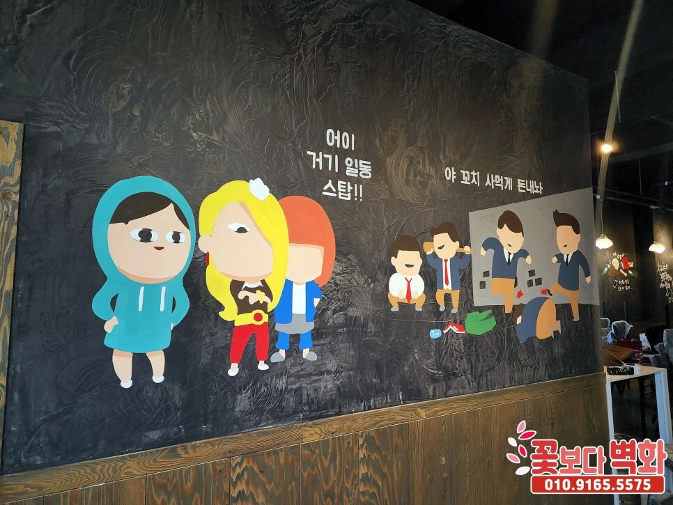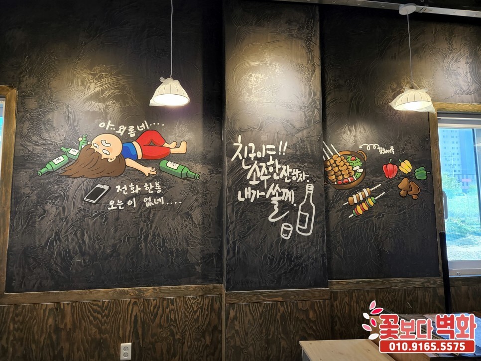 구미 수제꼬치전문점 꾸버찌 내부에 재밌는 포차, 술집 캐릭터벽화로 분위기 체인지!! 코믹한벽화, 꽃보다벽화