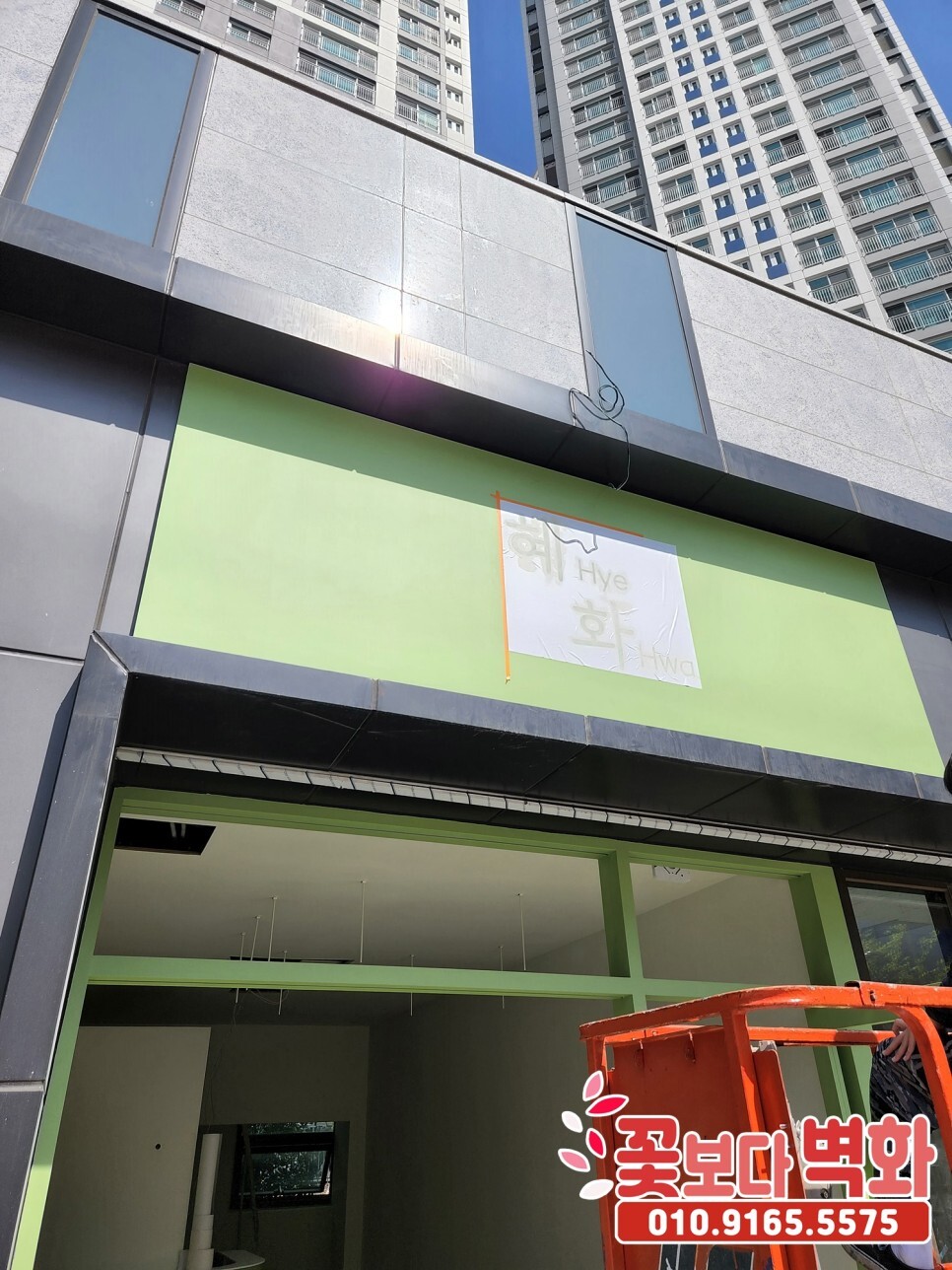 현장엔 밝은 올리브 그린톤으로 도색이 되어있는 철판 간판이