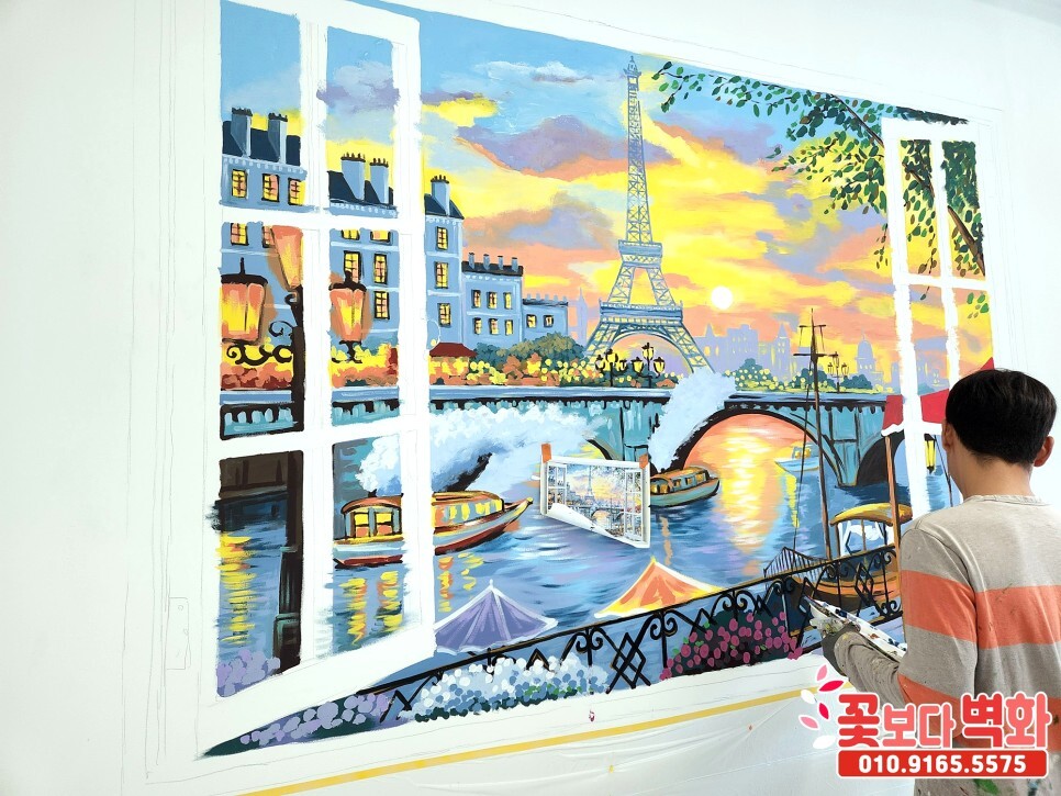 그럼 이번 베이커리 카페 트릭아트 파리 풍경 인테리어벽화