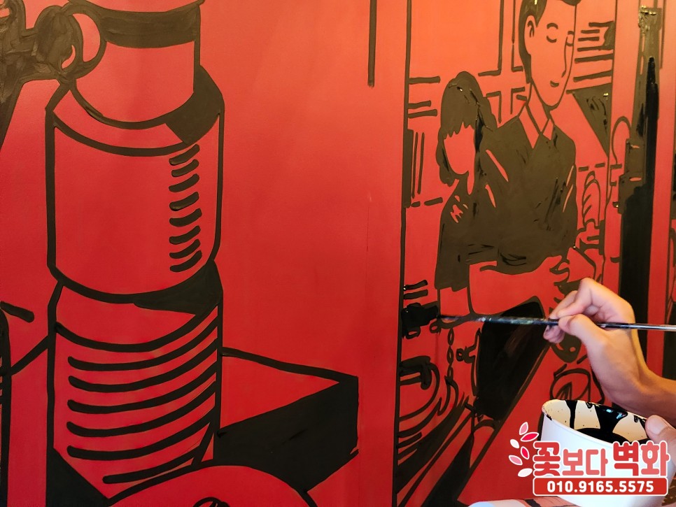 블랙과 레드의 컬러가 만나니 아주 재미난 벽화가