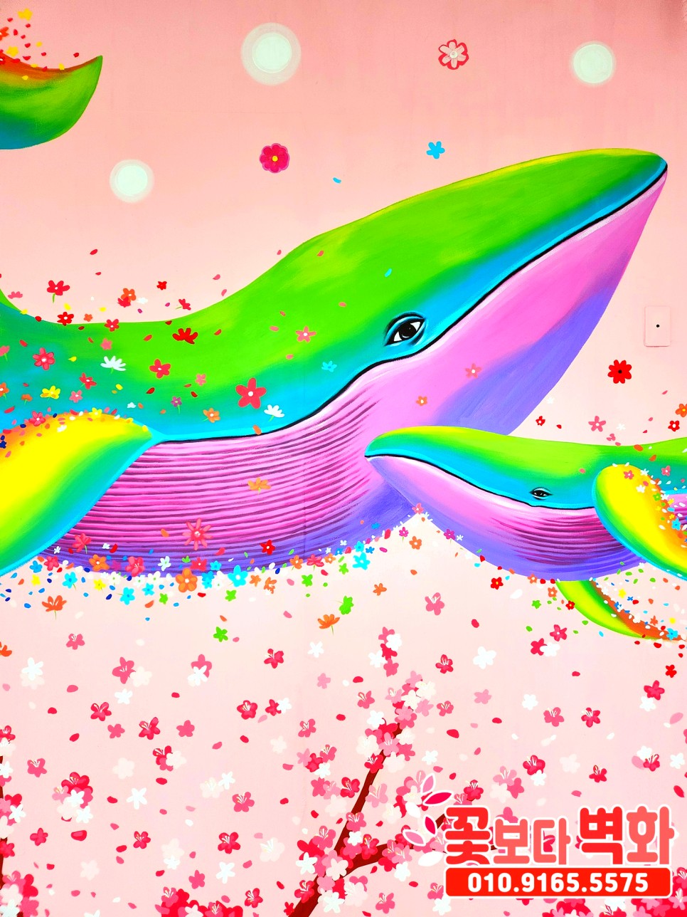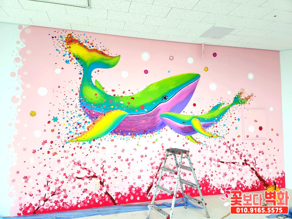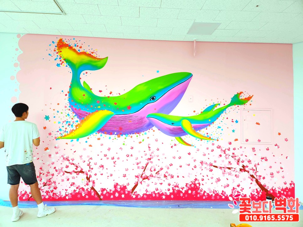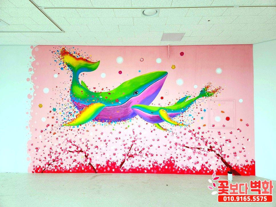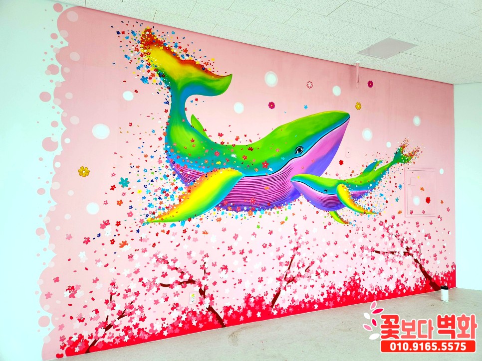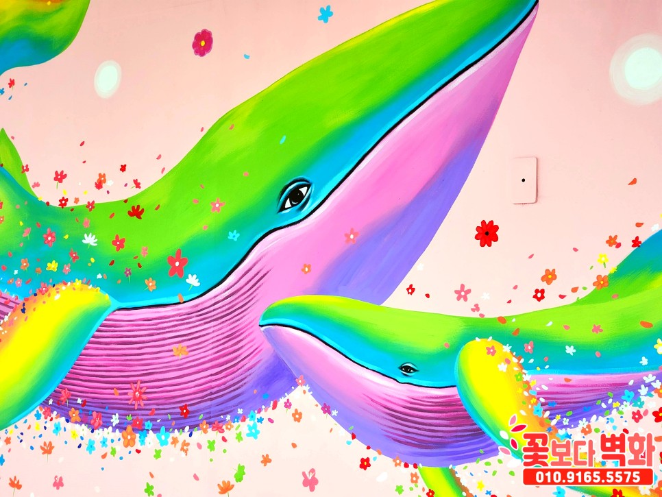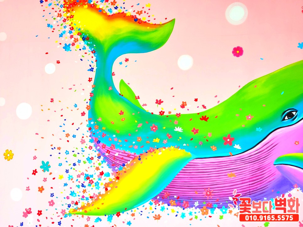 와우... 정말 고래와 함께 꽃들로 벽면이 알록달록 가득 찬 모습인데요 :)