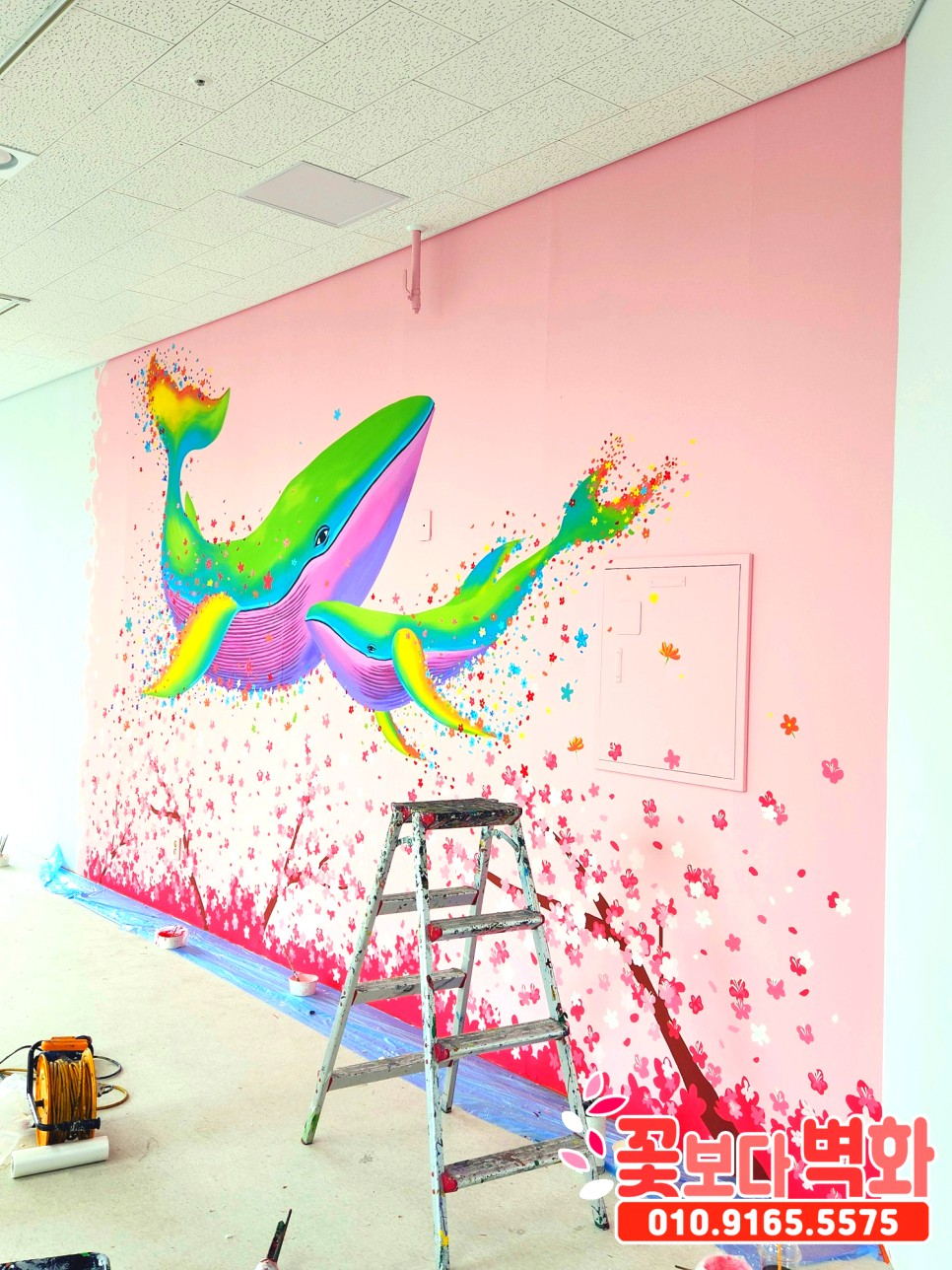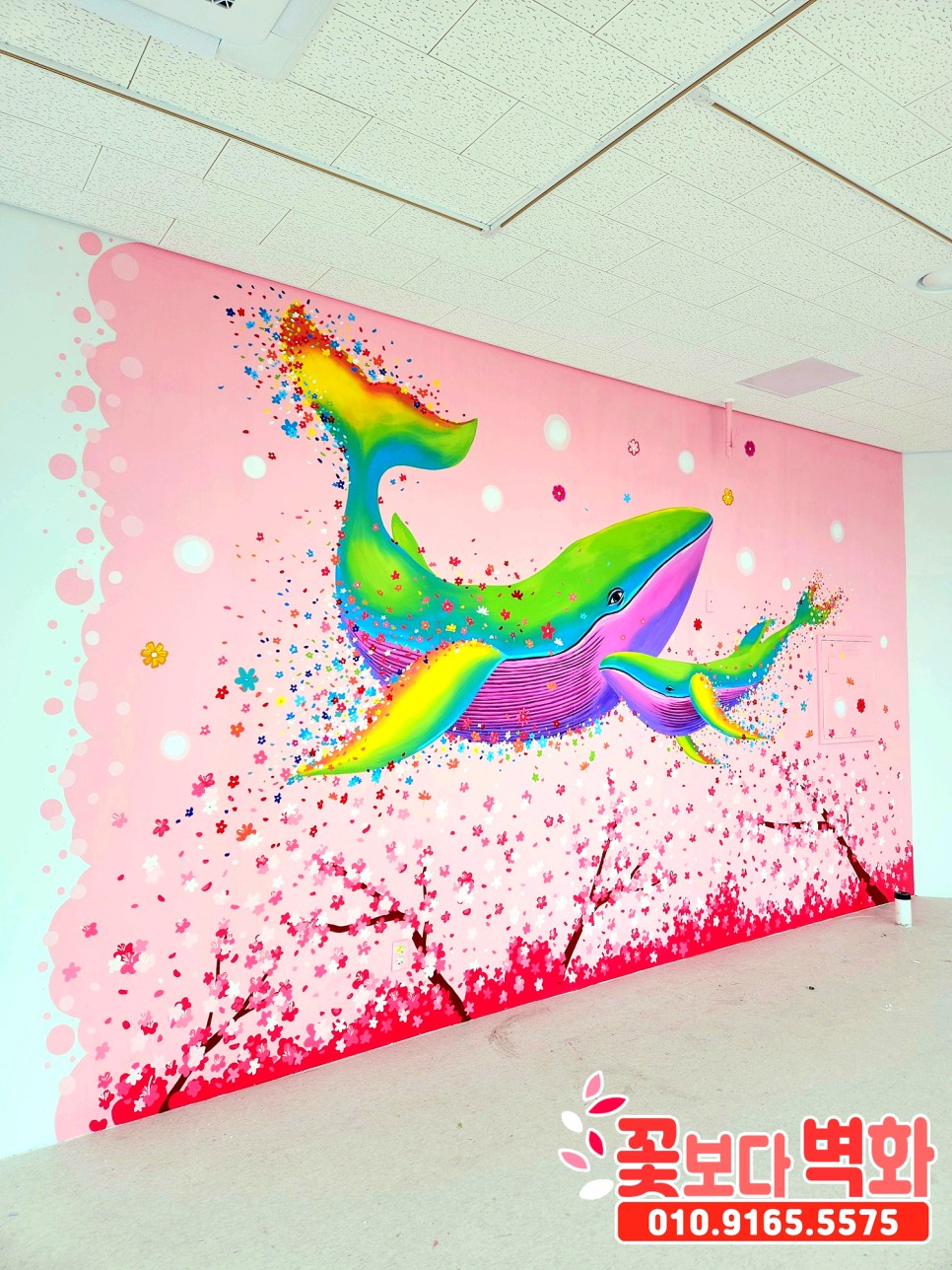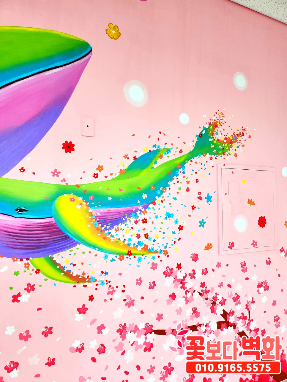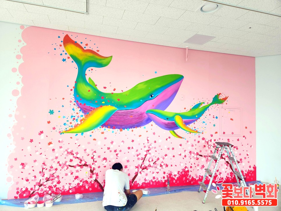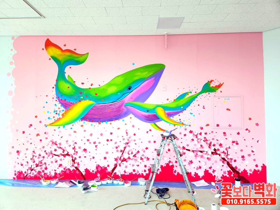 와우... 정말 고래와 함께 꽃들로 벽면이 알록달록 가득 찬 모습인데요 :)