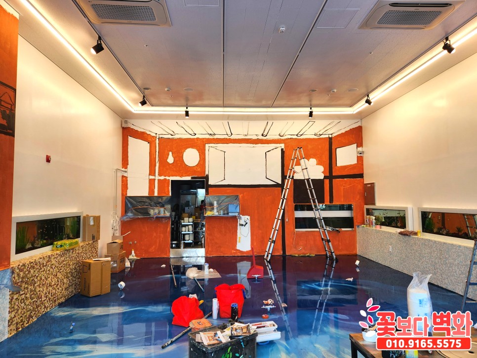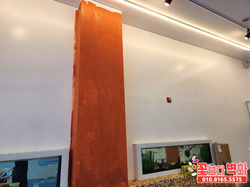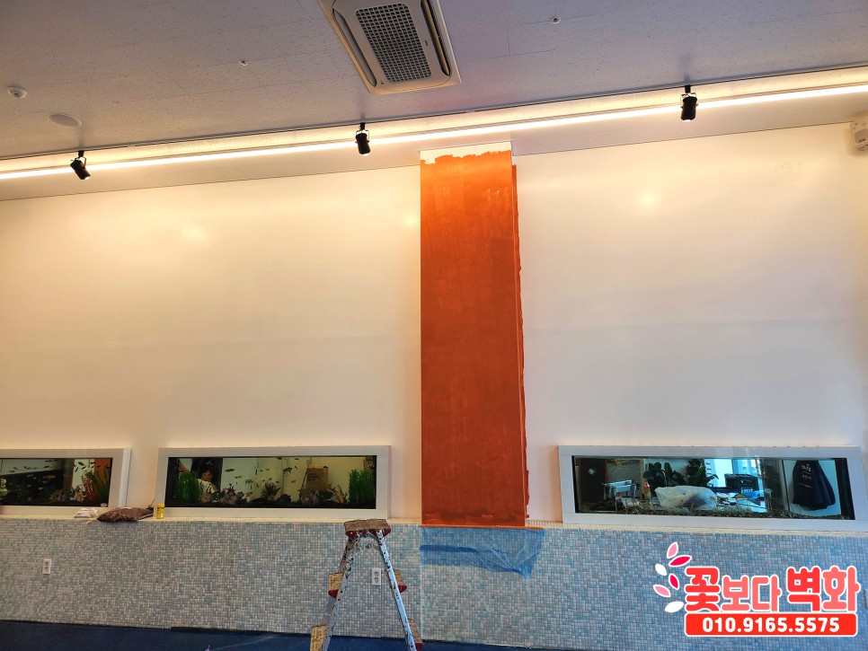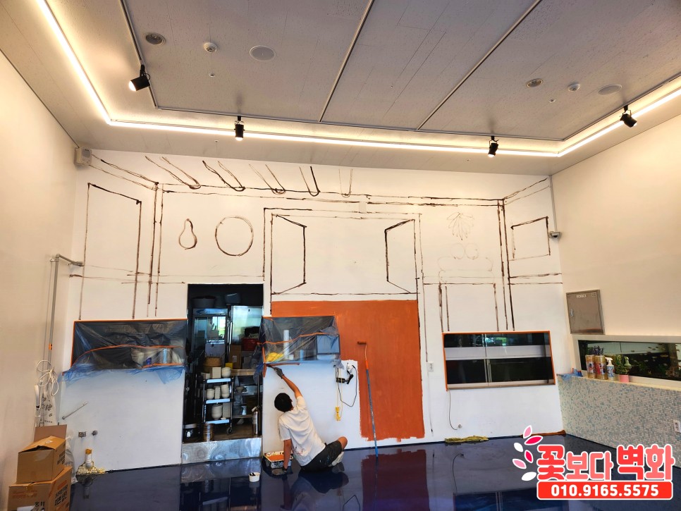 메인 벽면과 기둥 두 군데에 벽화작업을 했는데요
