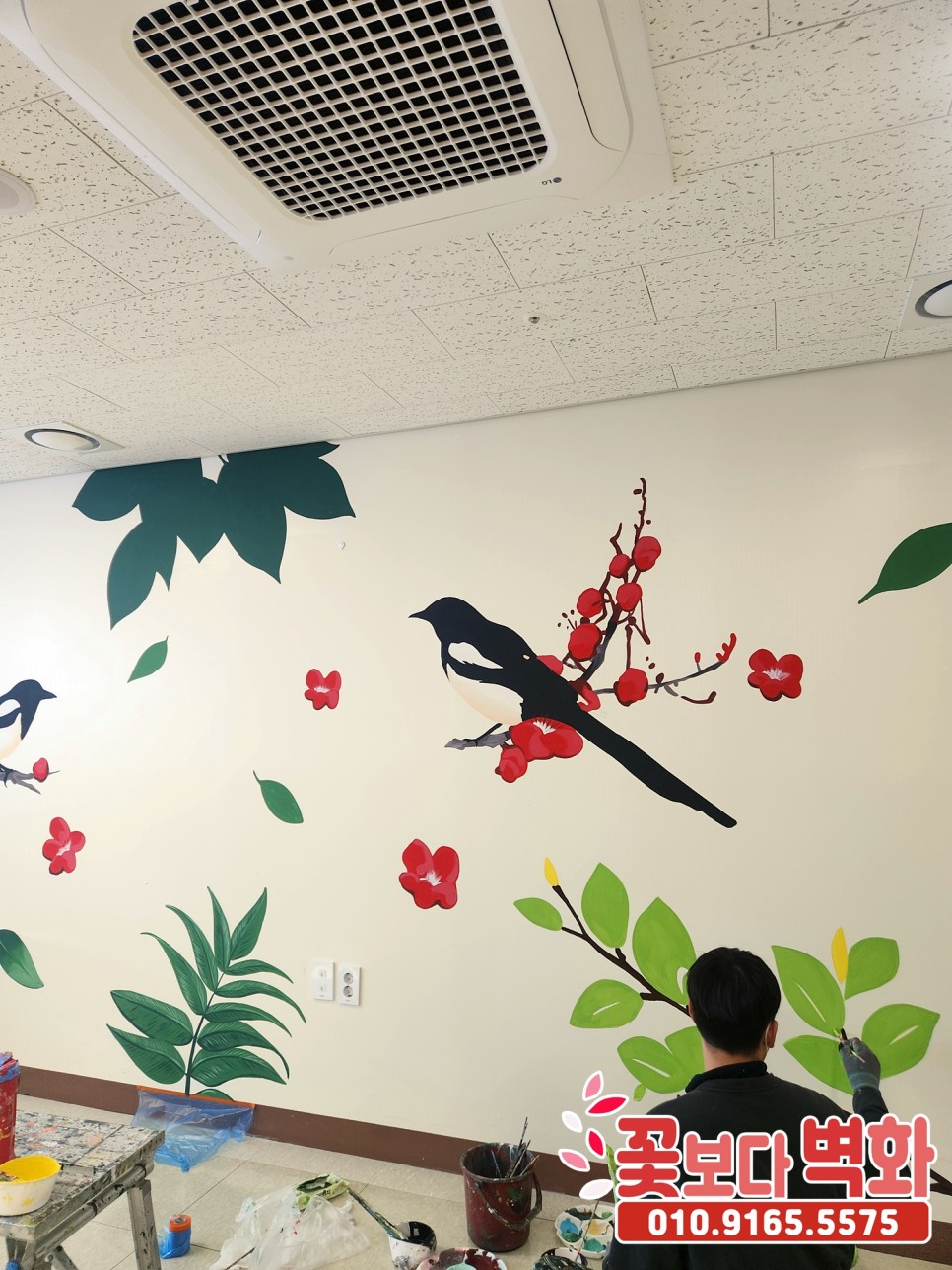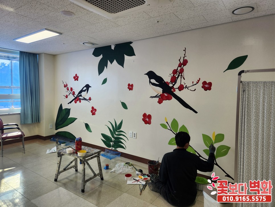 다음으로는 프로그램실 내부에 까치들과 함께 꽃과 나무들이 벽면을