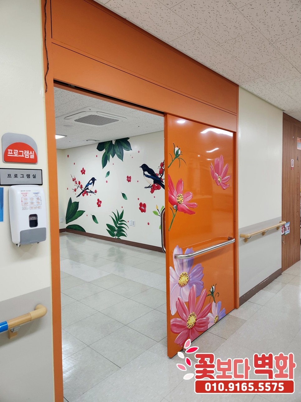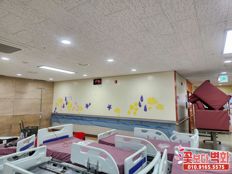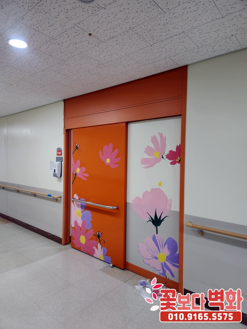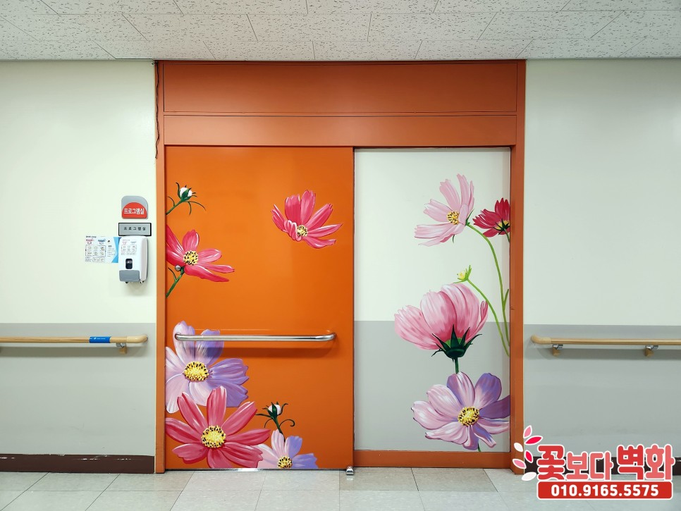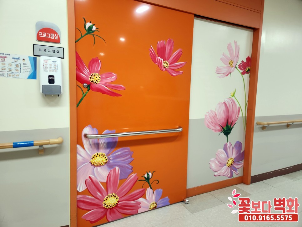 성공적으로 모든 벽면과 병실 문에 예쁜 꽃들로 완성이 되었습니다 :)