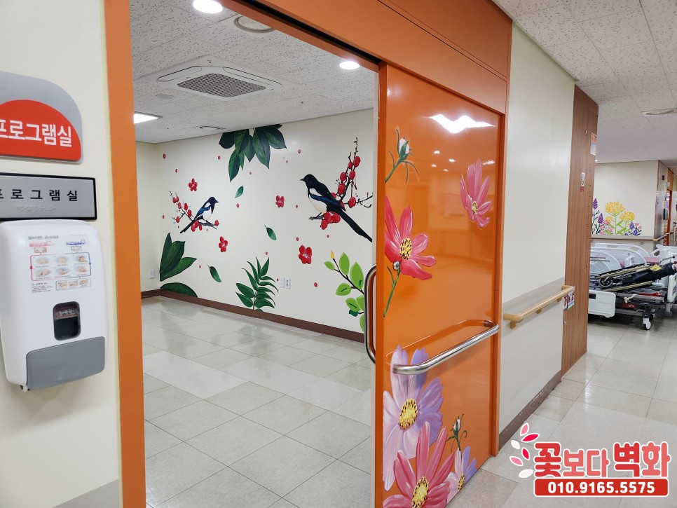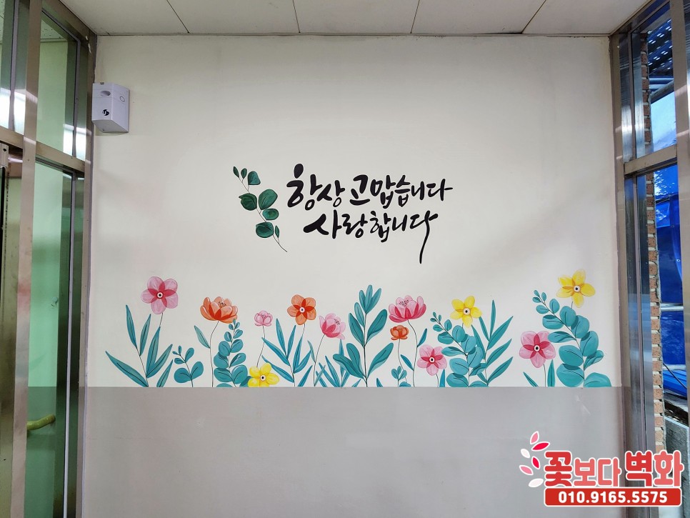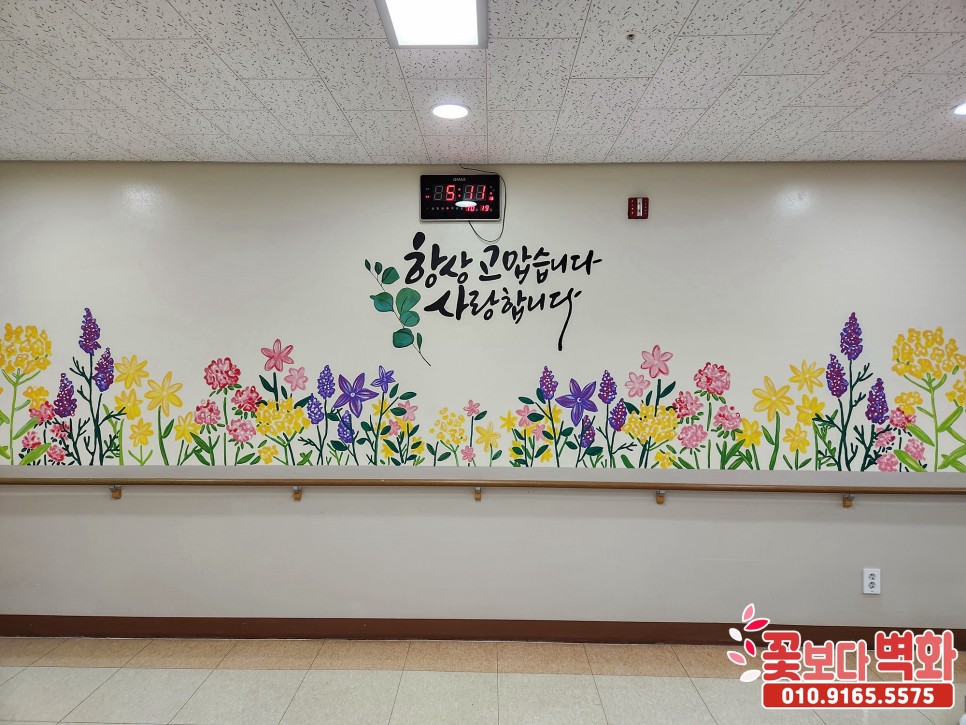 천안 시립노인요양병원 예쁜 꽃그림과 캘리그라피가 있는 병원 인테리어벽화/ 꽃보다벽화, 힐링벽화