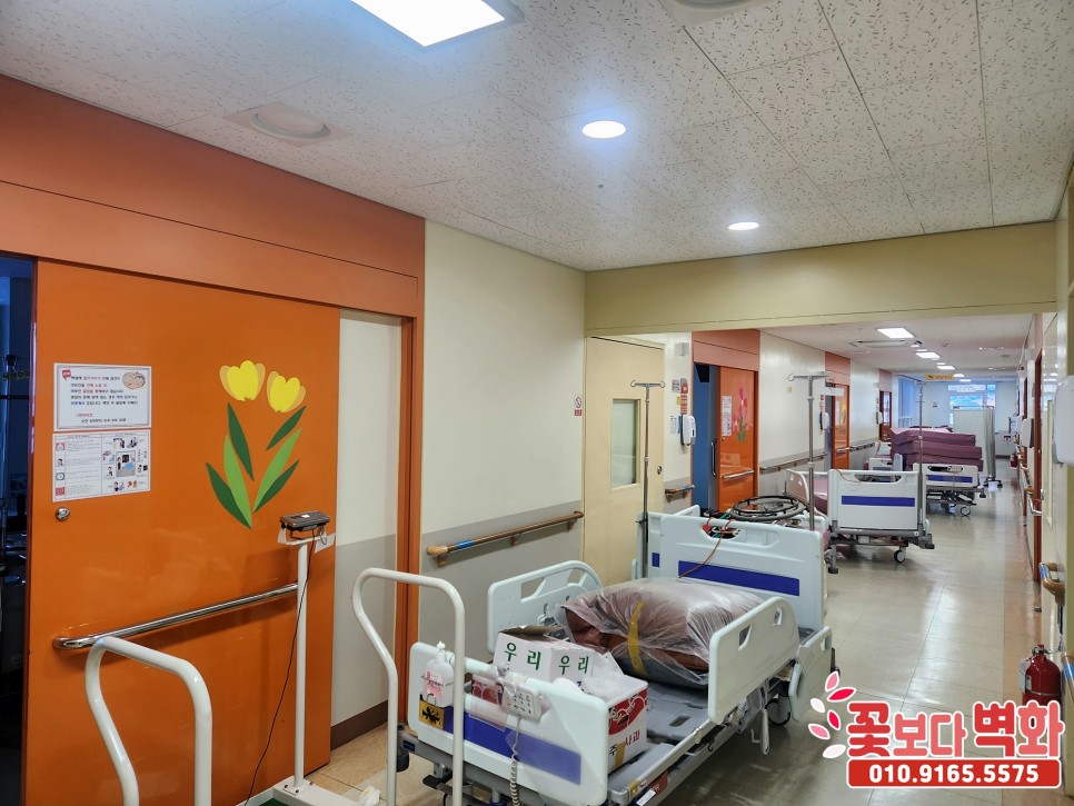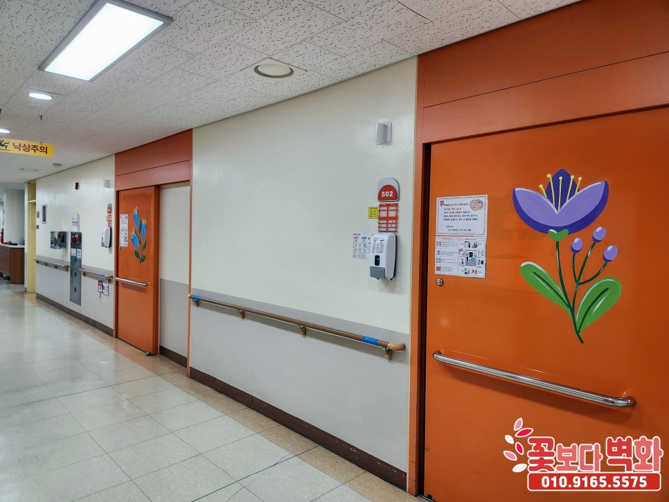 복도 벽면과 병실 문을 보시면서 기분 좋은 하루를 보내셨으면 좋겠습니다 :)
