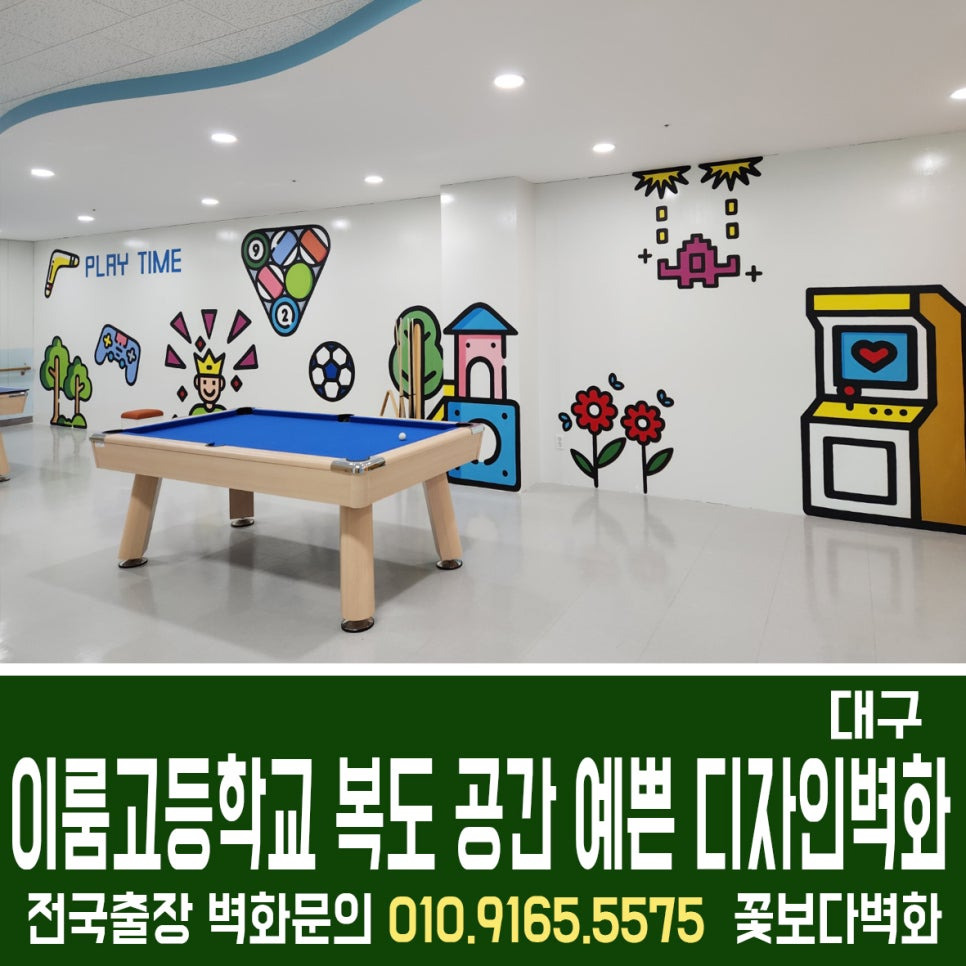 대구 이룸고등학교 복도 공간에 그려진 예쁜 인테리어벽화/ 학교벽화, 포인트벽화