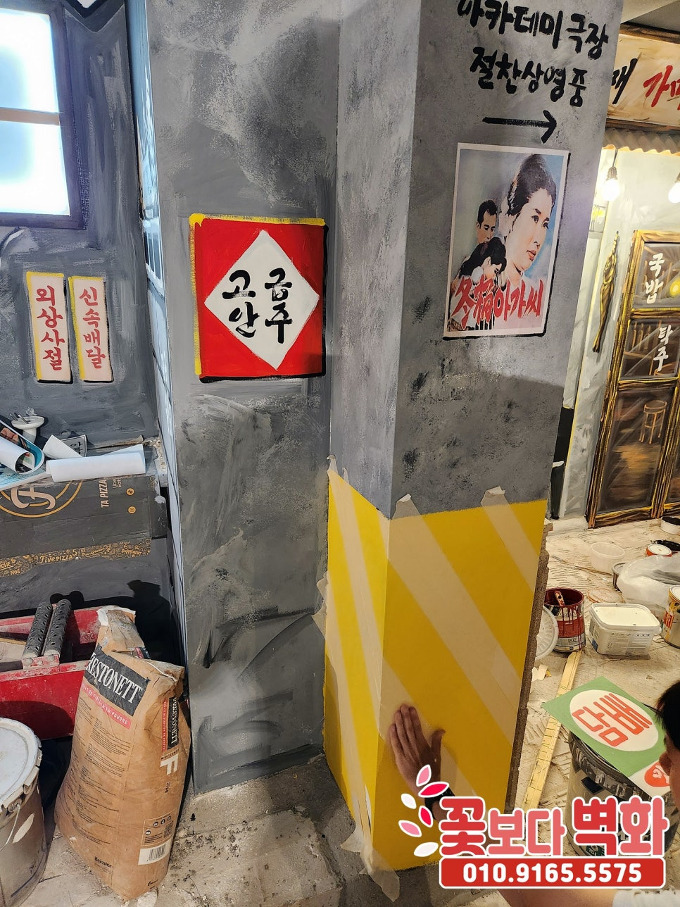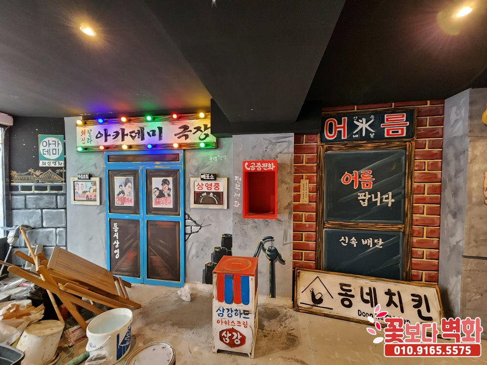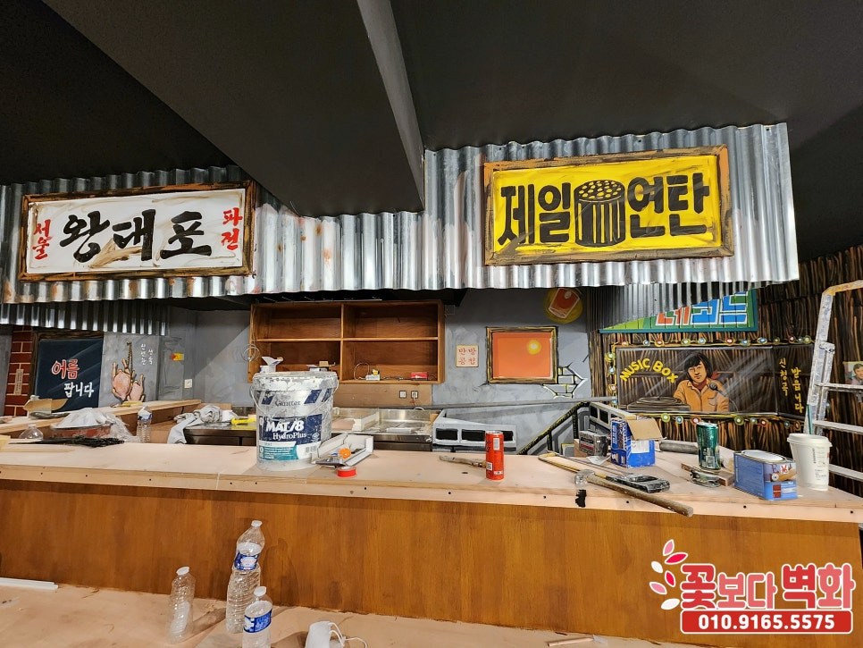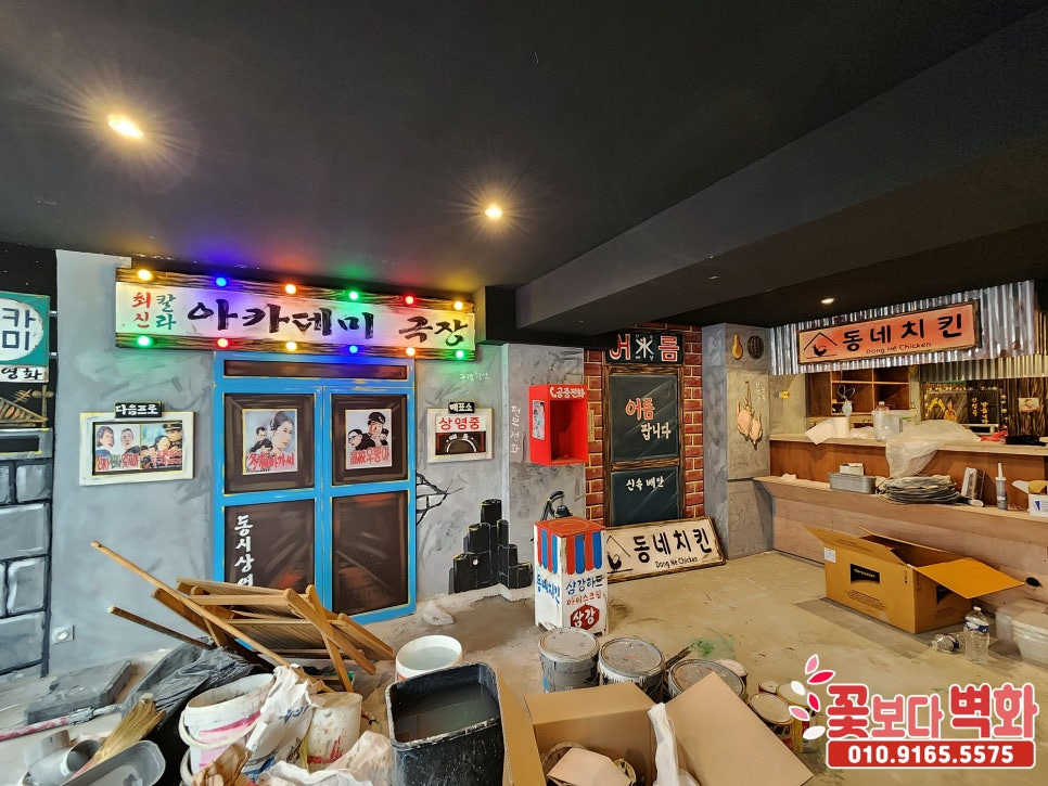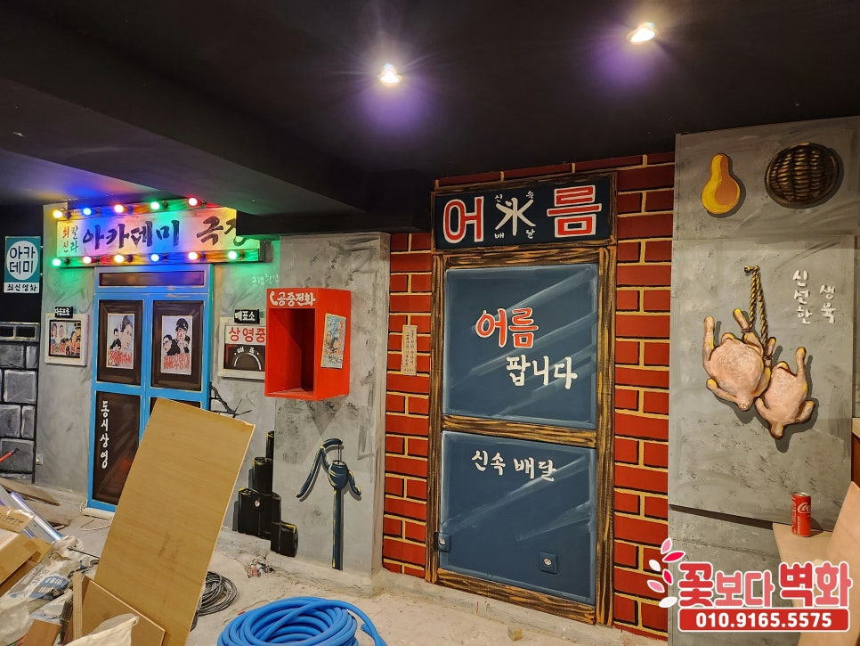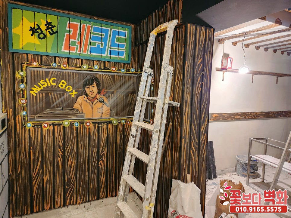 저희 꽃보다벽화에서 멋진 복고풍 디자인으로 가게인테리어를 꾸며보겠습니다!!:D