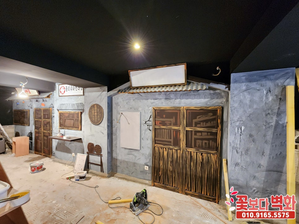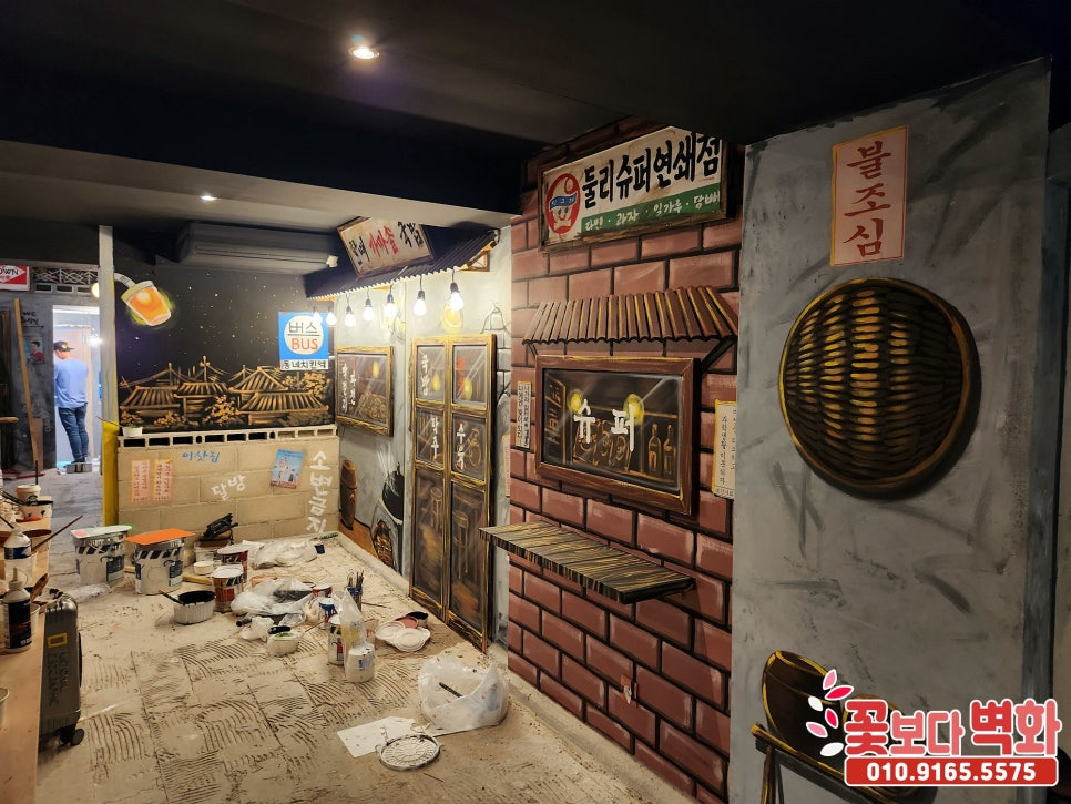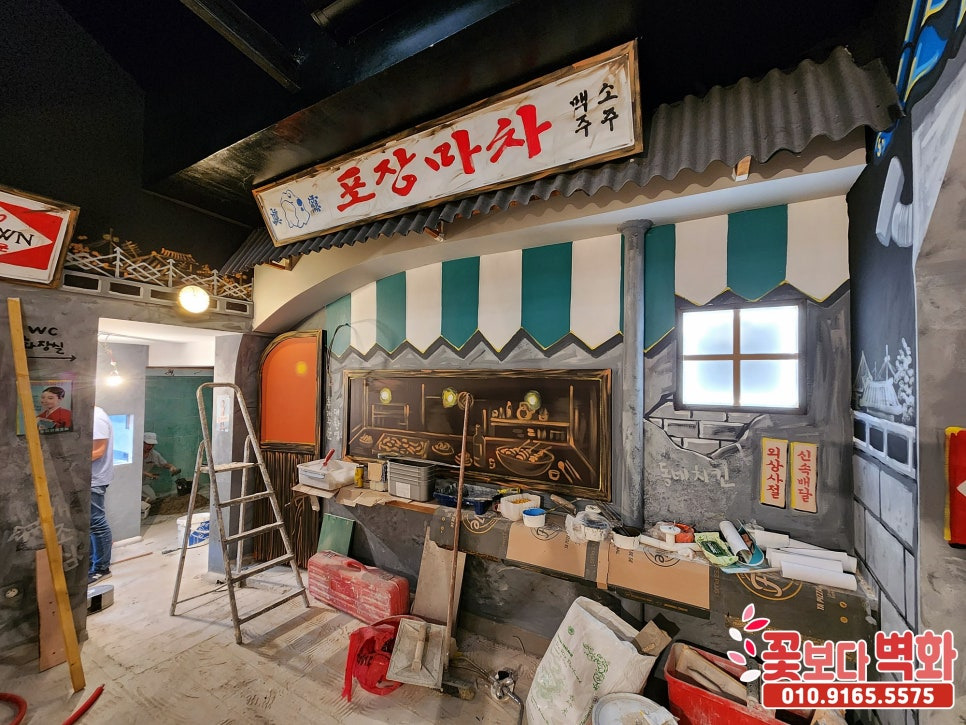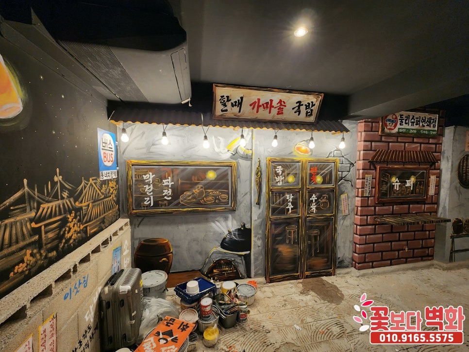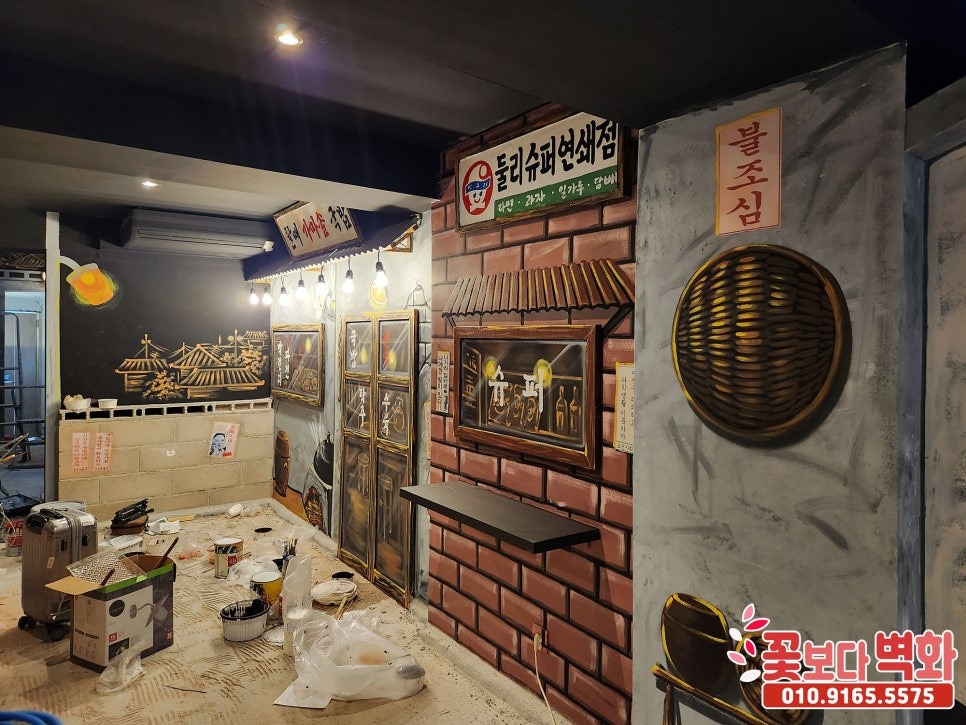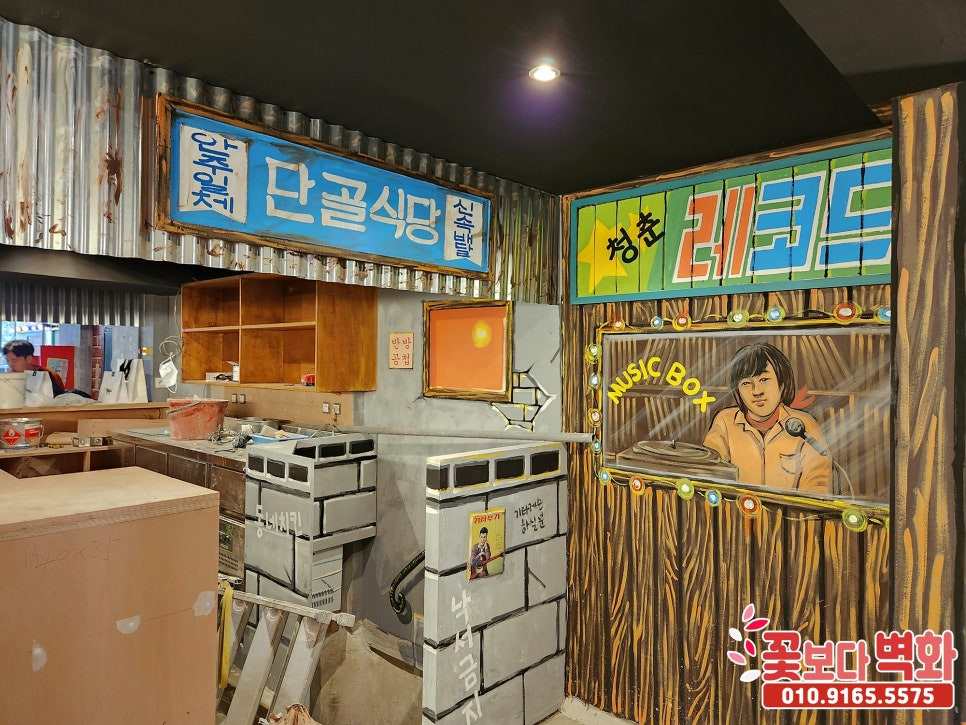 저희 꽃보다벽화에서 멋진 복고풍 디자인으로 가게인테리어를 꾸며보겠습니다!!:D