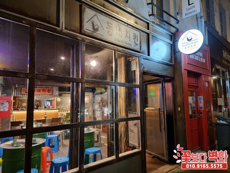 '동네 치킨' 이라는 브랜드의 치킨집을 루브르박물관 바로 옆 블록에